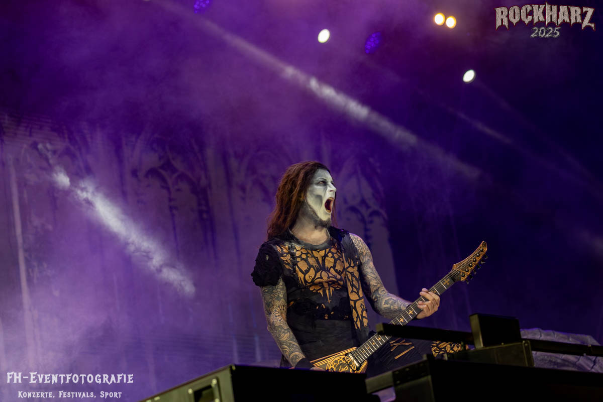 Den viertletzten Auftritt hatten Cradle of Filth. „Dani Filth“ hatte wirklich Bock. Ich habe auch schon Konzerte der Briten erlebt, wo der Funker irgendwie nicht so richtig übersprang. Auf dem Rockharz hat das dieses Mal aber mal sowas von geklappt. Sie haben ein wunderbares Set aus den ganzen Klassikern gespielt. Ja, mag eine Set gewesen sein, das auf Nummer sicher setzte, aber ich habe mich ausgesprochen gut unterhalten gefühlt. Die PA hat ja bei der Range der Stimme des Herrn Filth, egal wo, immer ihre Probleme, aber das RHZ hatte das dieses Jahr wirklich sauber im Griff.