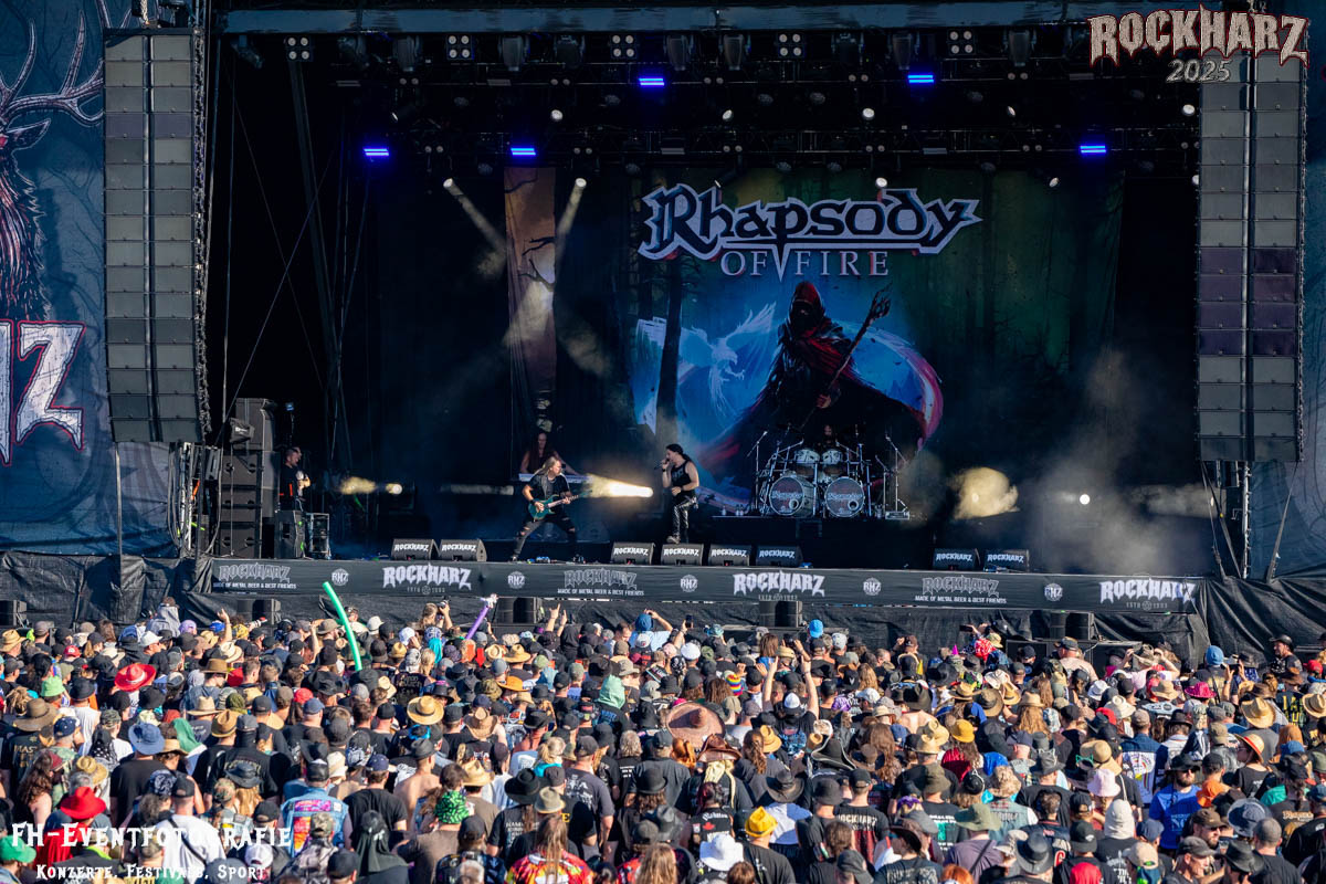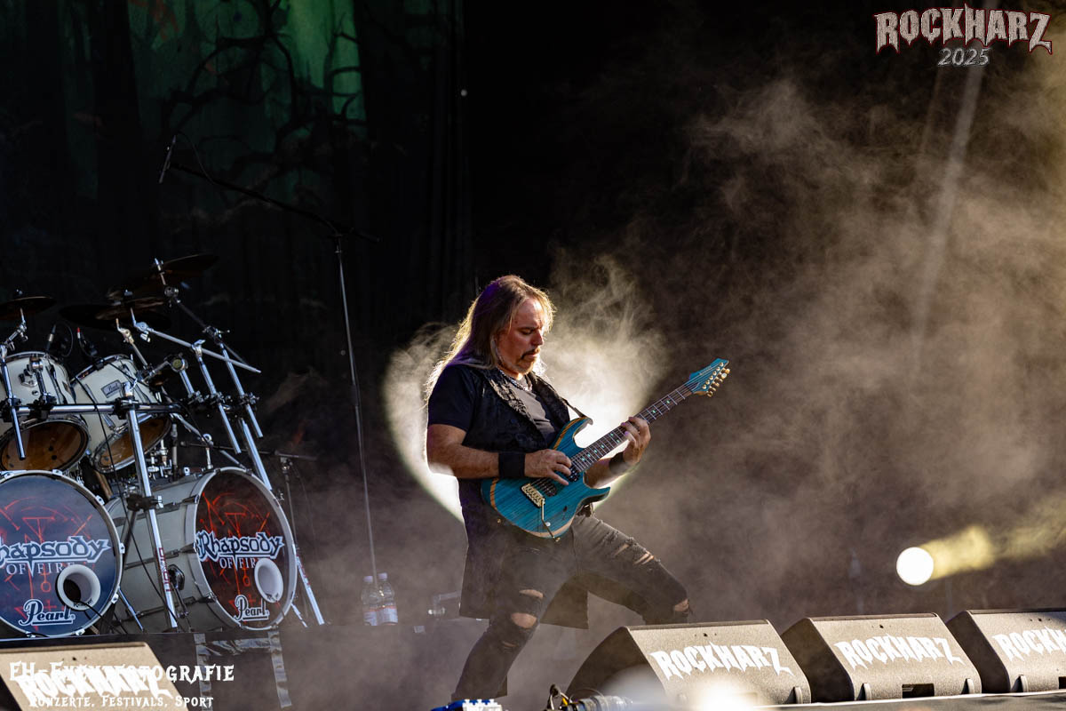 Die letzte Band für diese Galerie und unseren Auftakt war Rhapsody Of Fire. Die Italiener hatten etwas mit der Technik zu kämpfen, sodass wir sie leider nicht in voller epischer Länge erleben durften. Aber so ist nun mal das Festivalleben. Die Slots sind fest und so muss sich alles dem Zeitplan unterordnen. So hatten wir etwas weniger Songs, aber trotzdem eine richtig geile Zeit vor der Bühne.