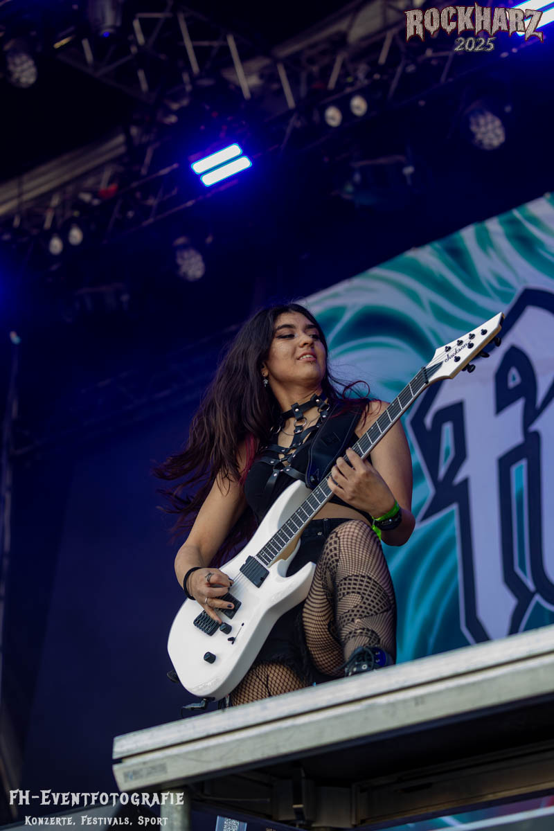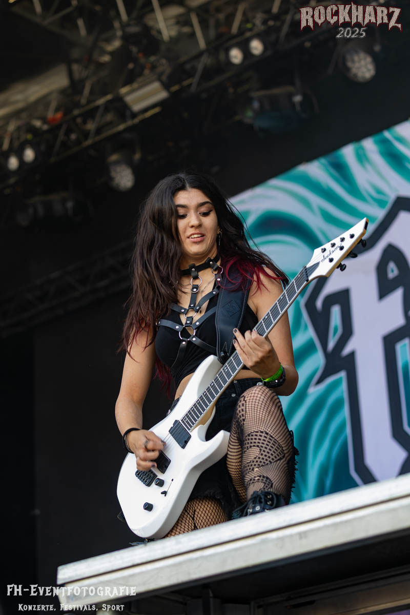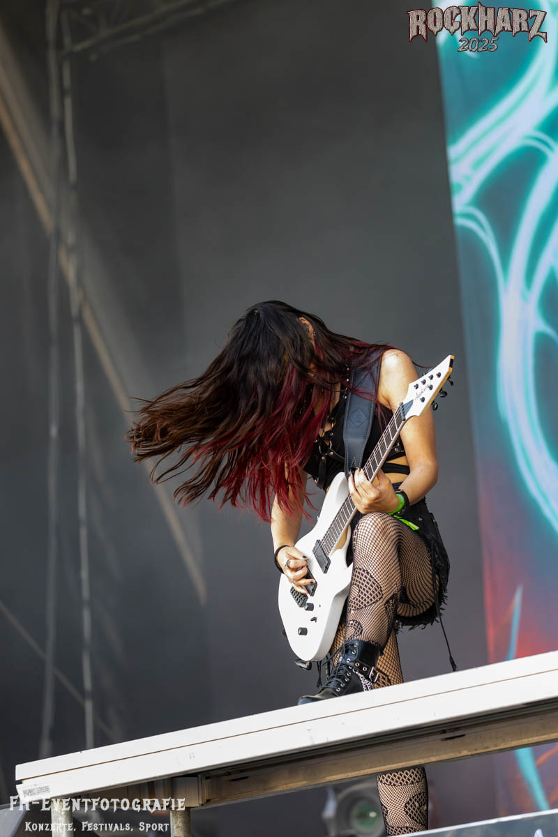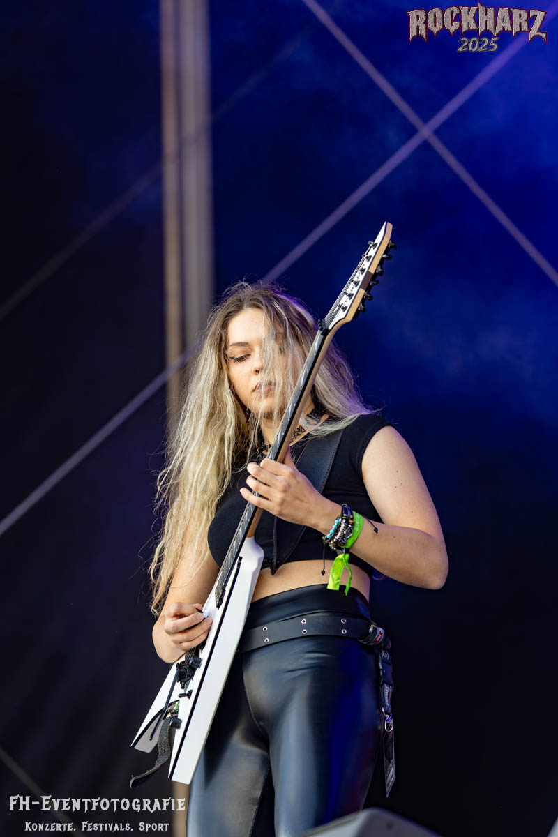 Weiter ging es mit Female Fronted Metal auf der Bühne: Frozen Crown aus Mailand überzeugten mit energiegeladenem Power Metal. Die 2017 gegründete Band begleitete 2019 unter anderem Elvenking auf ihrer „3 Ways to Magick“-Tour, bei der auch fünf Konzerte in Deutschland stattfanden. Schon beim Rock in Rautheim 2024 konnte mich die Band begeistern!