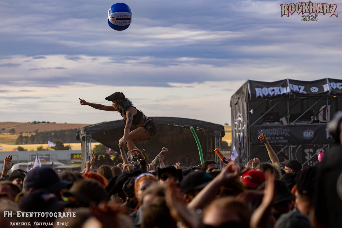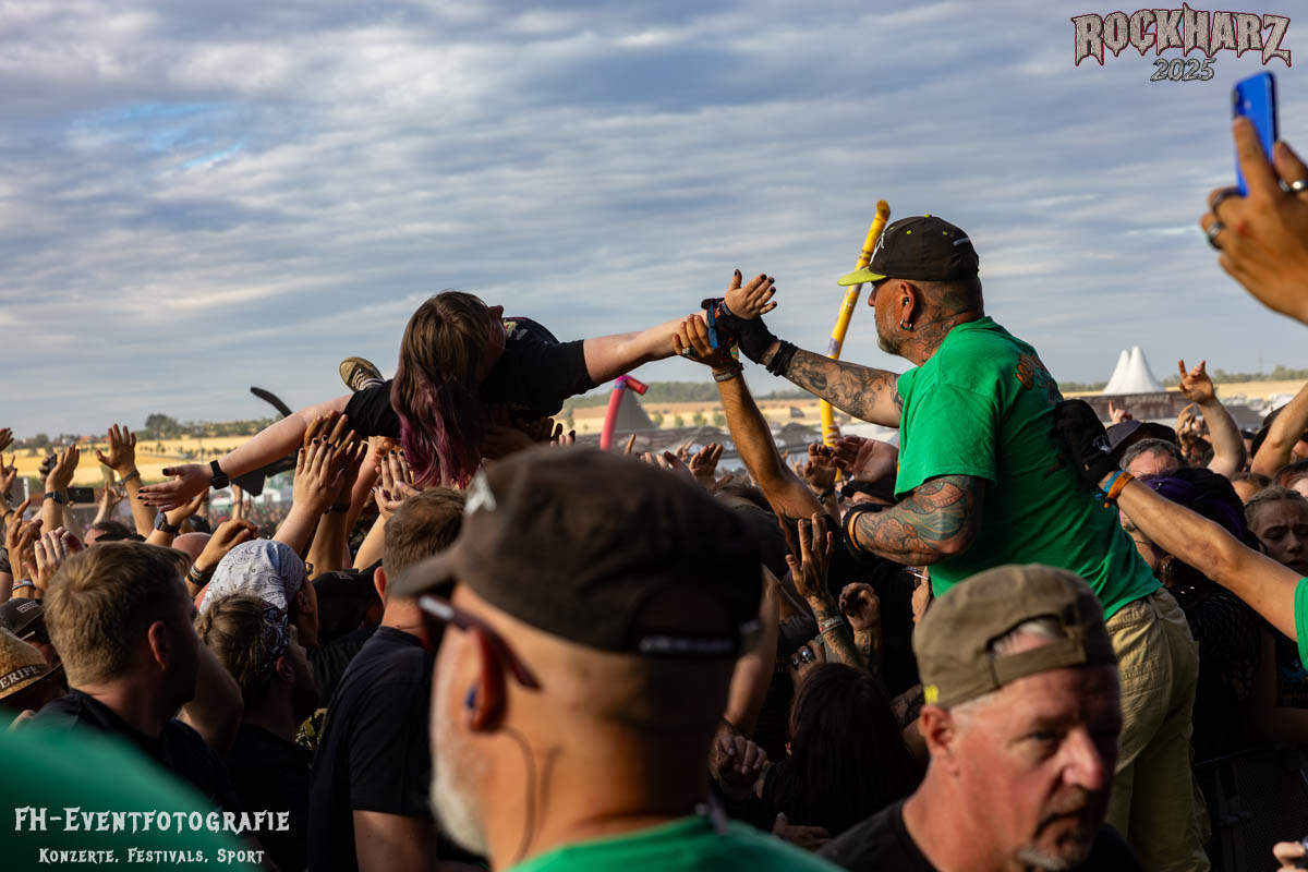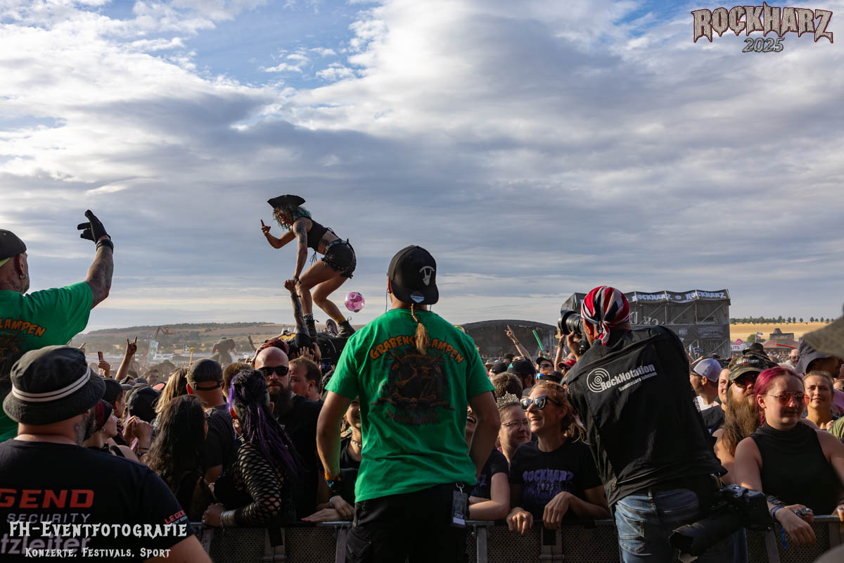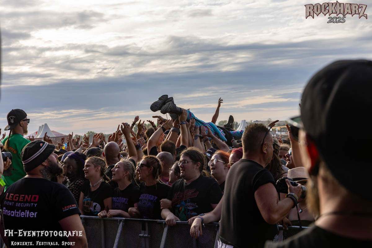 Kurz vor dem Ende von ASP versammelten sich Teile der Crew, der Orga und der Veranstalter hinter der Bühne. Vor dem Headliner am Samstag richtete Buddy einige Worte an die Rockharz-Fans, um sich für alles zu bedanken. Doch dieses Mal war es etwas ganz Besonderes: Niemand wusste davon, aber er machte Dani live auf der Bühne einen Antrag! Natürlich gab es ein klares „Ja“ – begleitet von Jubel, Herzen aus dem Publikum und tosendem Applaus, bevor sich beide glücklich in die Arme fielen.