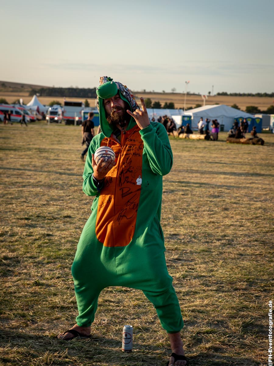 Meine zweite Nacht auf dem Flugplatz Ballenstedt ist vorbei. Dank einem wunderbaren Frühstück mit Ei, Brot und Butter geht es ins Infield. Das Zelt war eine Gluthölle, aber draußen ist es wirklich ertragbar. Also nutze ich die Zeit bis der Hitzehammer kommt und schaue mir die ersten Bands an.