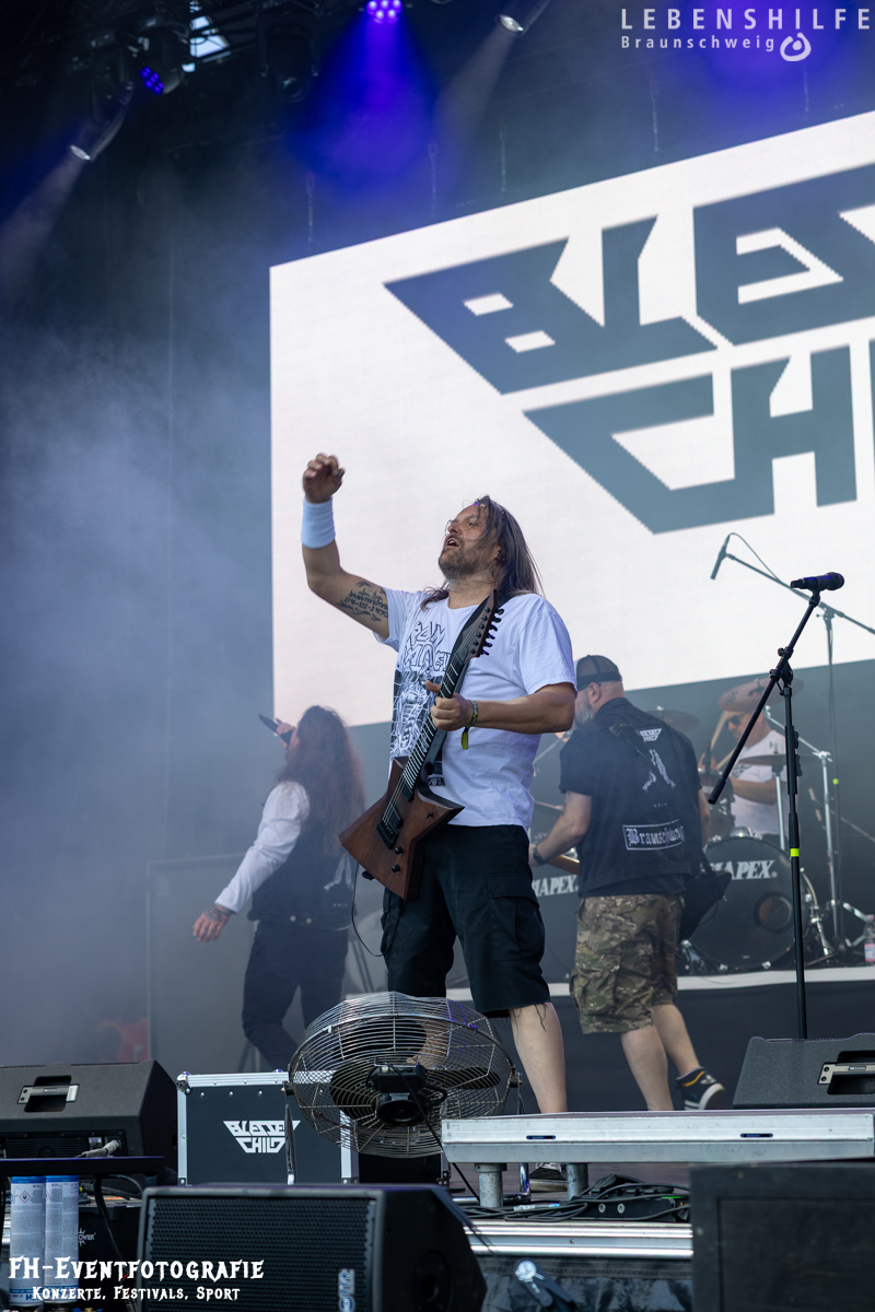 Das RiR wurde pünktlich von den Braunschweiger Groove Thrash Metalern Blessed Child eröffnet. Direkt zu Beginn feierten schon über 2000 Fans bei strahlendem Sonnenschein die geile Musik und die tolle Lokation!