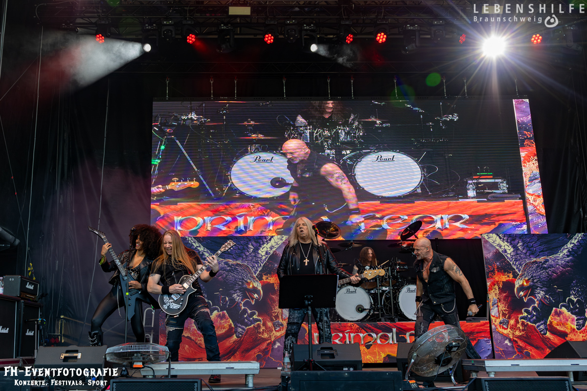 Den Anschluss an diese Powerstimme übernahmen die Altmeister von Primal Fear. Aber bevor es da zu den ersten Riffs kam, musste »Marco Spiller« auf die Bühne. Als Dank für alles gab es ein signiertes Drumfell, welches an Marco übergeben wurde.