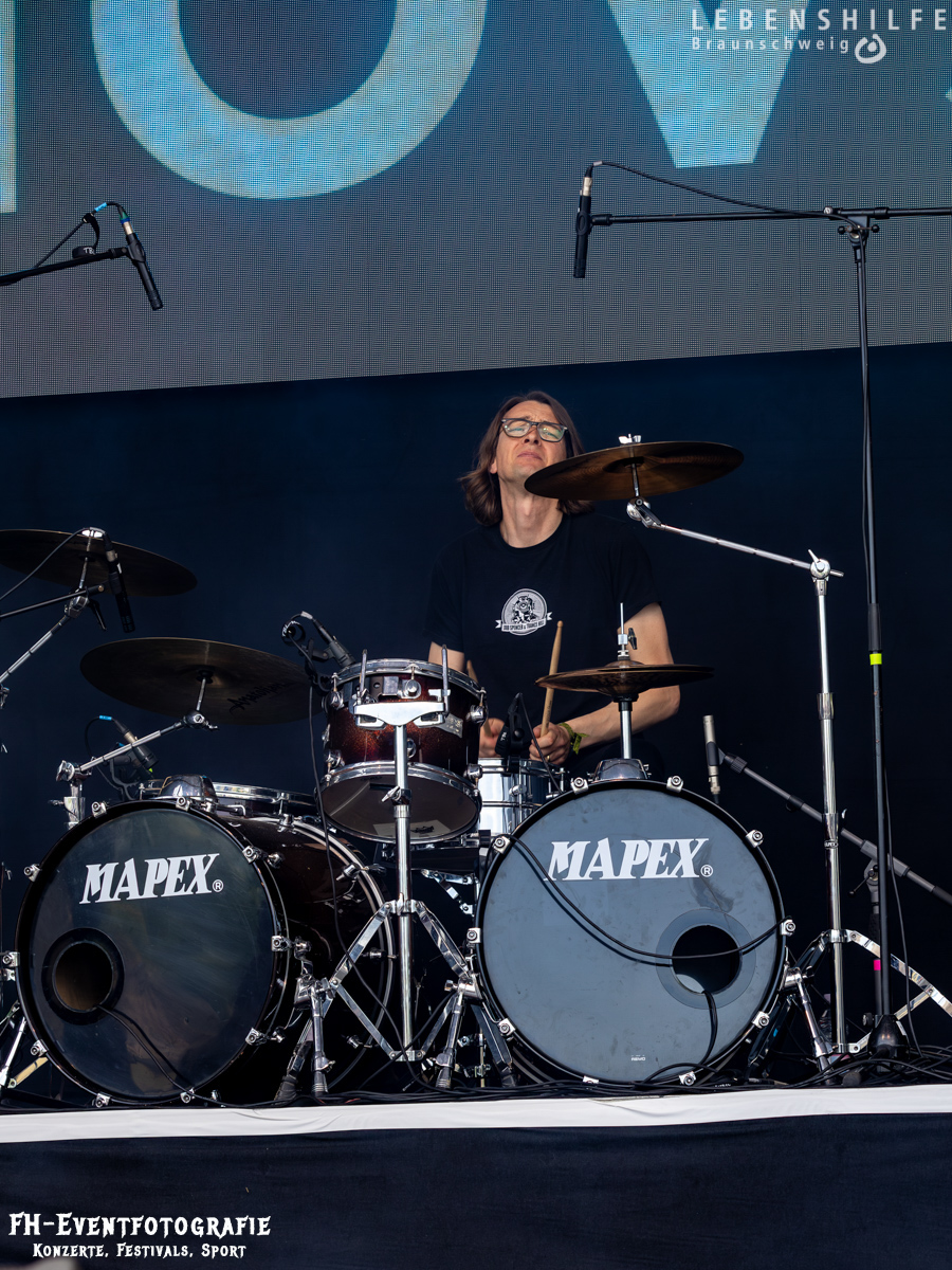 Ach ja, die Bühne des RiR ist echt schick und groß, sodass ich da was zitieren muss »…der Schlagzeug Riser ist fast so groß wie die gesamte Bühne, wo wir sonst oft spielen dürfen…«, in diesem Sinne spreche ich sicher vielen begeisterten Fans aus der Seele, Ihr seid sicher in unserer Region immer wieder herzlich willkommen. Wir hätten da noch ein paar Bühnen.