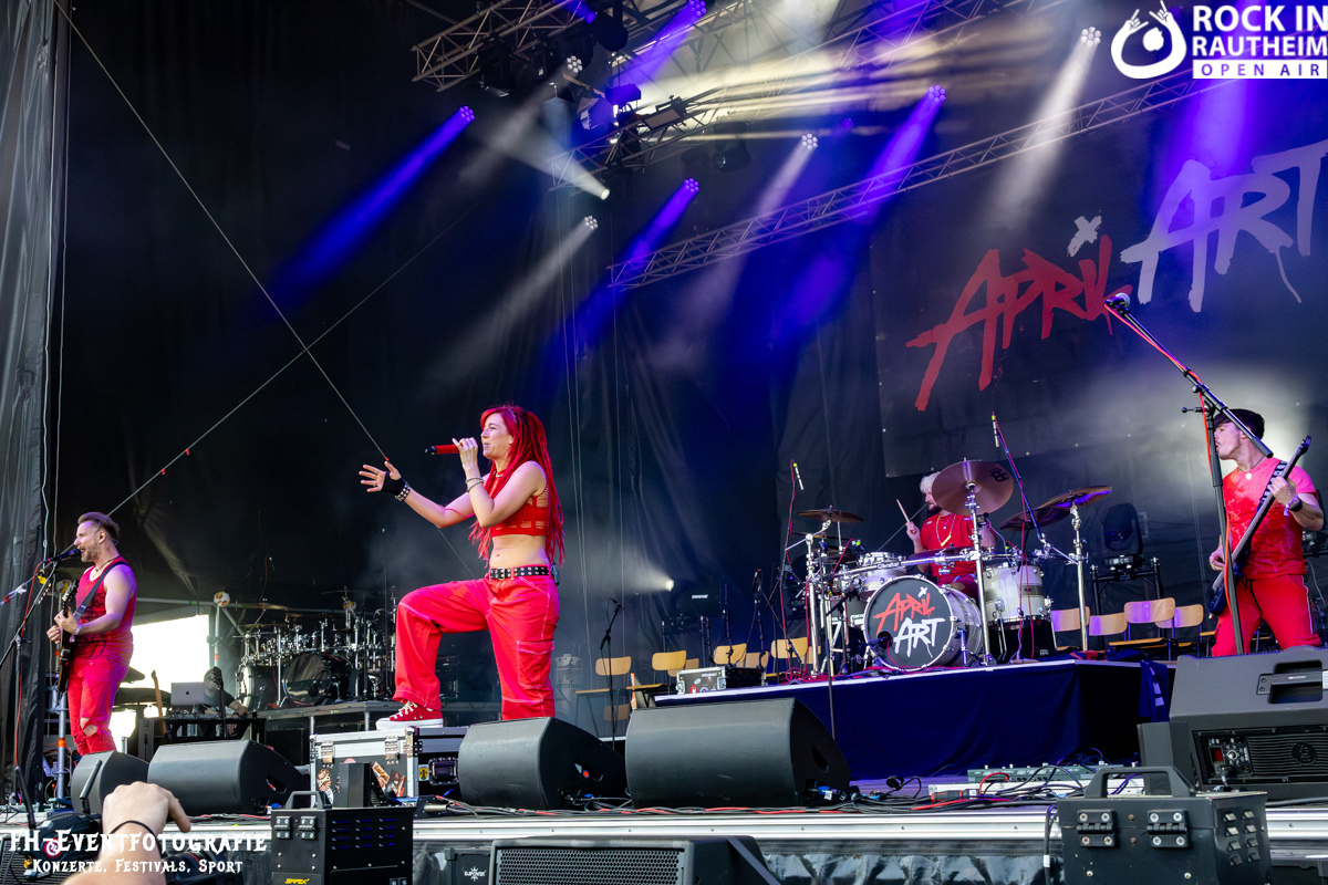 Nun kamen als Drittes eine Band ganz in Rot. Für einige meiner Freunde, mit denen ich da war, einer der Hauptgründe zum Rock in Rautheim zu fahren. April Art hatten Ihren Auftritt. Und verdammt noch mal, was für einen. Lisa-Marie ist und bleibt einfach nicht nur eine begnadete Sängerin, sondern auch eine grandiose Frontfrau. Fast jede Band, die ich über die Jahre so ab live habe erleben dürfen, fangen mit höchstens einem Knaller an. Das Konzept hatte April Art mal komplett über den Haufen geschmissen. Die ersten drei Songs alleine waren schon ein Knaller nach dem anderen. Die roten Derwische hatten von Anfang an das Publikum im Griff und holten auch den letzten aus dem Mittagsblues. April Art sind einfach wie eine Naturgewalt und sie machen unendlich viel Spaß. Als sie zum Schluss, nachdem sie die Schlagzahl an geilen Songs durchgehend hochhalten konnten, Metallica anstimmten, war es aus. Diese Band muss einfach noch viel bekannter werden. Ich bin mir sicher, dass sie dieses Jahr auf dem Wacken dafür den endgültigen Grundstein legen werden. Ich freue mich auf noch viele Konzerte von Ihnen, ob in kleinen Häusern, oder, wie sie es sich verdient haben, auf ganz großen Bühnen.