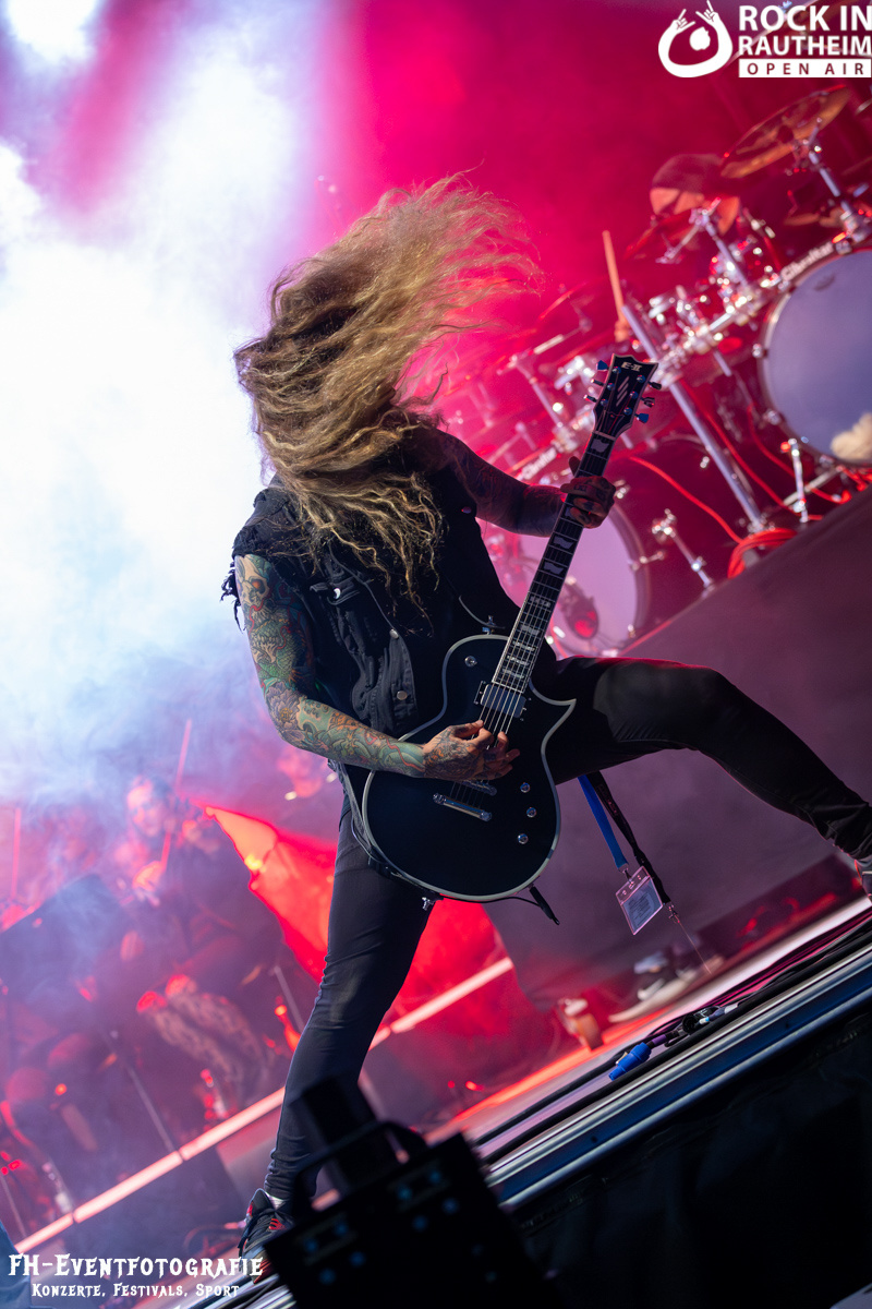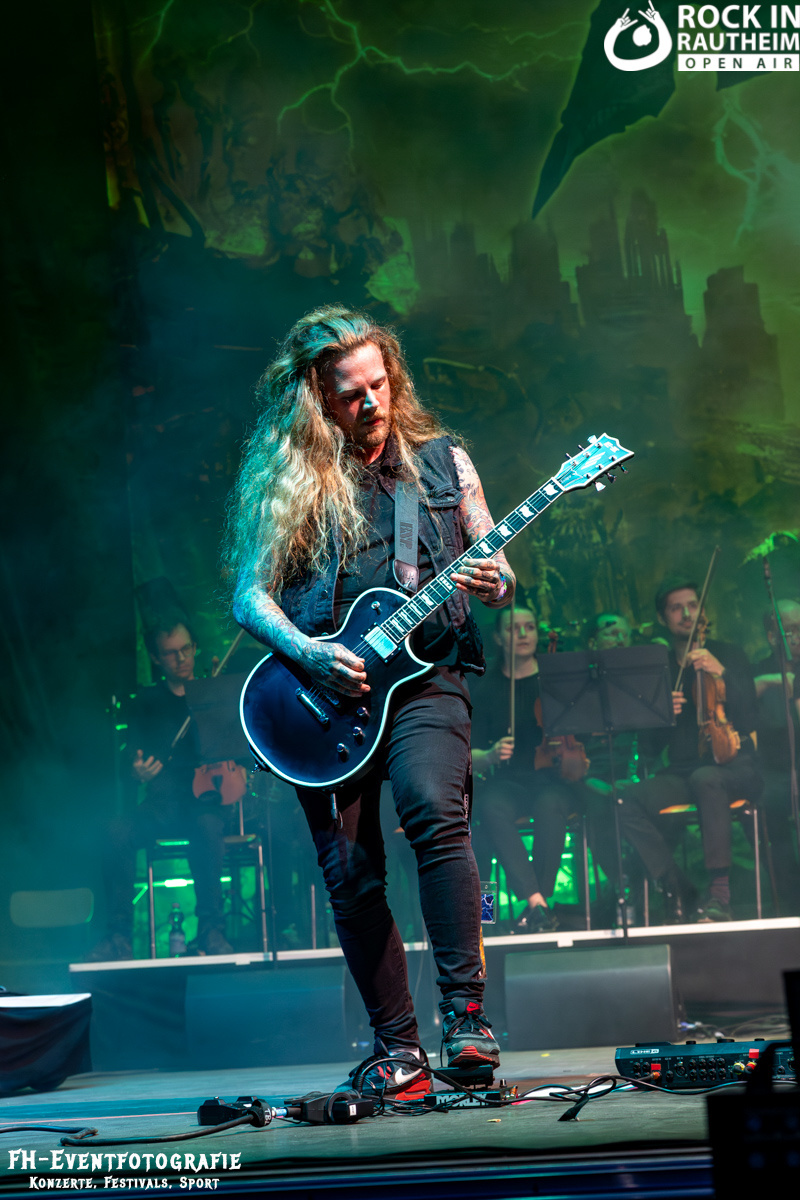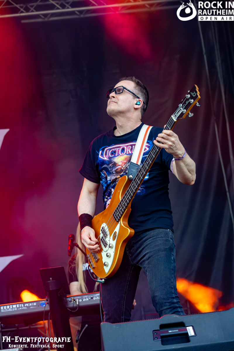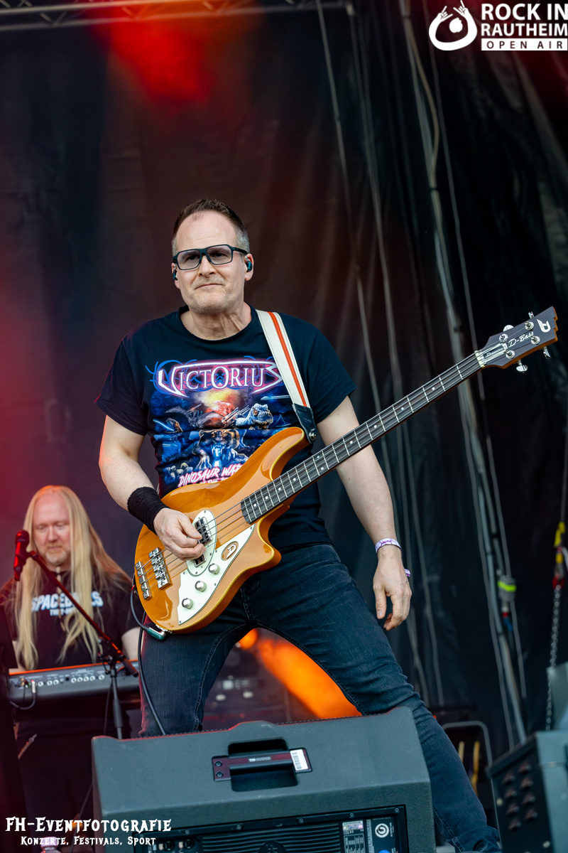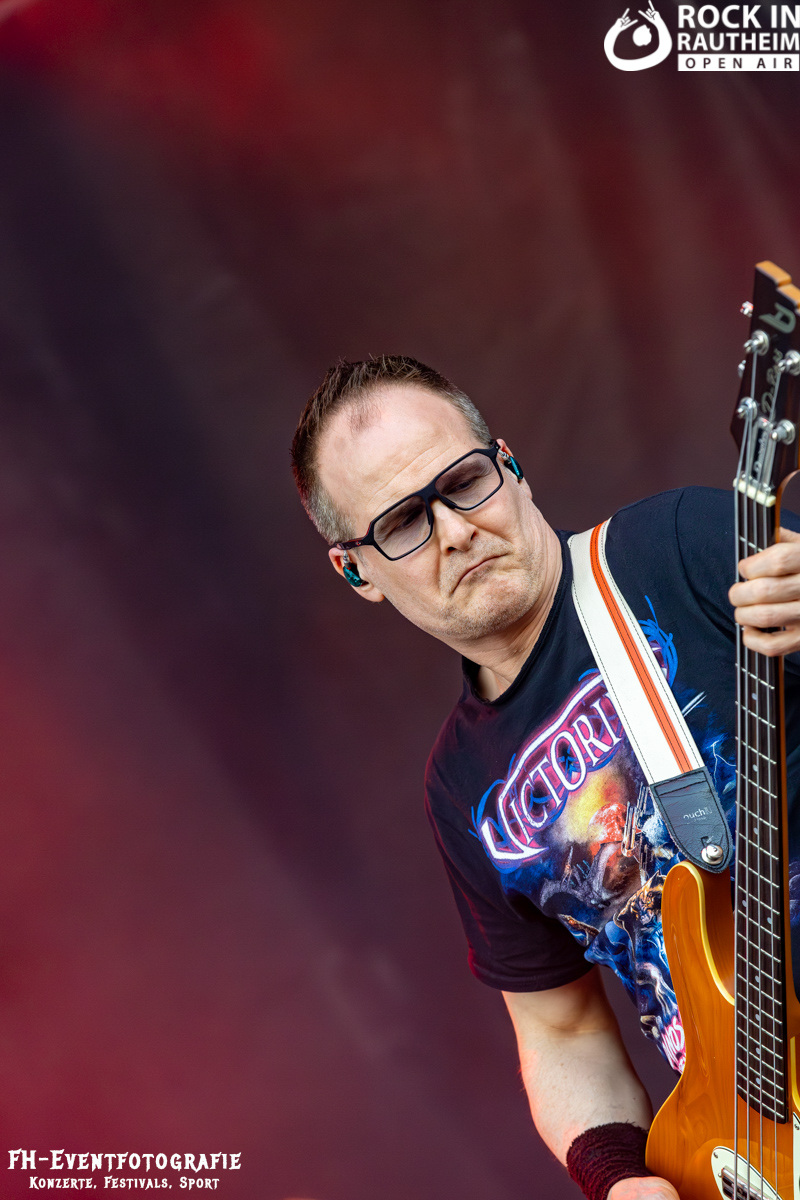 Nun kam der grandiose Abschluss des ersten Tages des Rock in Rautheim. Es betraten Rage und das Lingua Mortis Orchester der TU Braunschweig die Bühne. Über eine Stunde spielten sich die Herren aus Herne durch Nebel, Licht und Feuer in die Herzen der rund 2000 Fans vor der Bühne. Zum Glück für uns alle war Peavy bei bester Stimme. Kein Anzeichen mehr von einer Unbill, die Rage den Tourauftakt etwas eingetrübt hatte. Er spielte und er sang so großartig, wie ihn wohl alle in Erinnerung hatten. Diese Urgesteine gibt es bereits seit rund 40 Jahren und das zelebrierten sie aus vollen Zügen. Sie spielten fast schon eine Werkshow. Vieles, womit sie zu der Größe der deutschen Metal-Szene geworden sind, wurde dank des unterstützenden Orchesters geradezu zelebriert. Einige absolute Perlen der frühen Jahre dieser einzigartigen Band blieben bei der „Kürze“ des Slots leider auf der Strecke. Aber gleichwohl war das ein wirklich großartiges Konzert und kann als Dank für den ersten Tag dieses Festivals auch für alle Beteiligten gesehen werden. Wenn sich alle wohlfühlen, läuft es einfach.