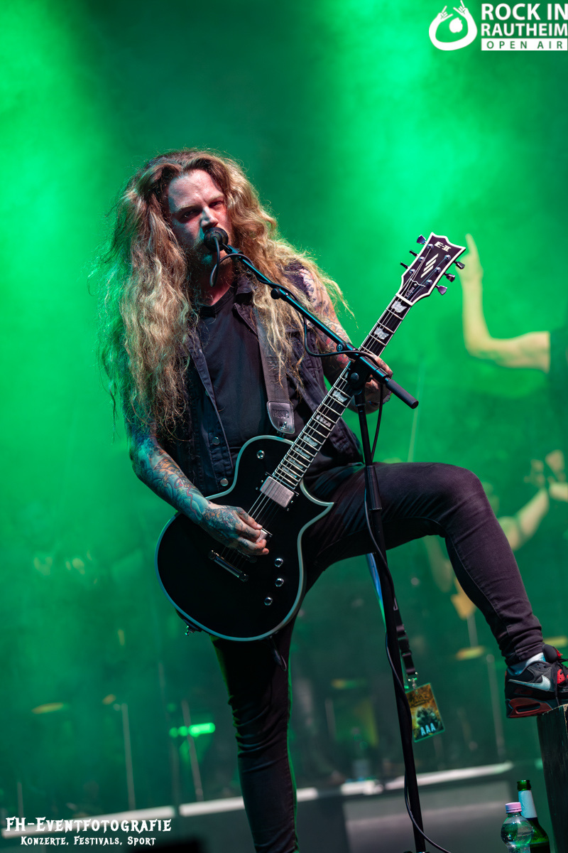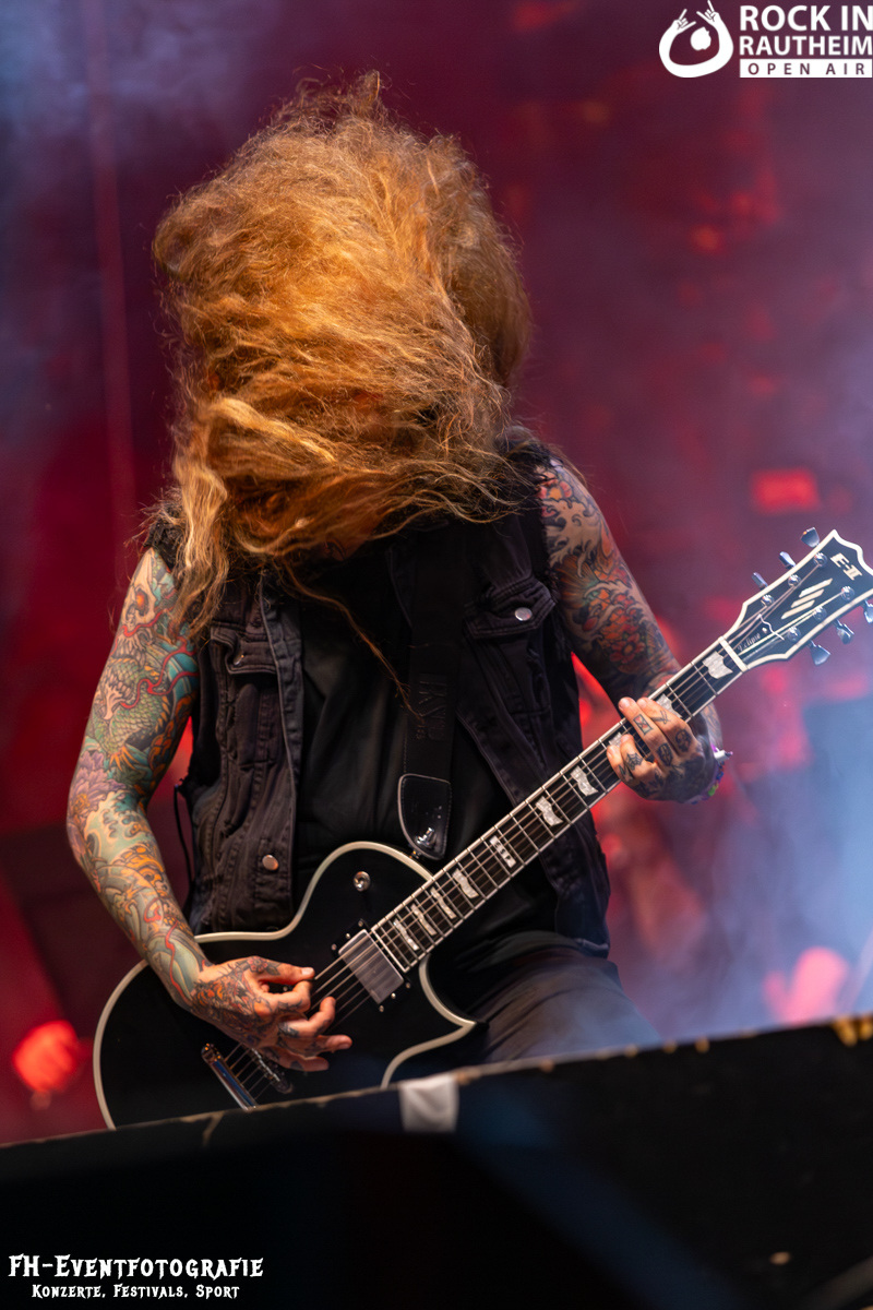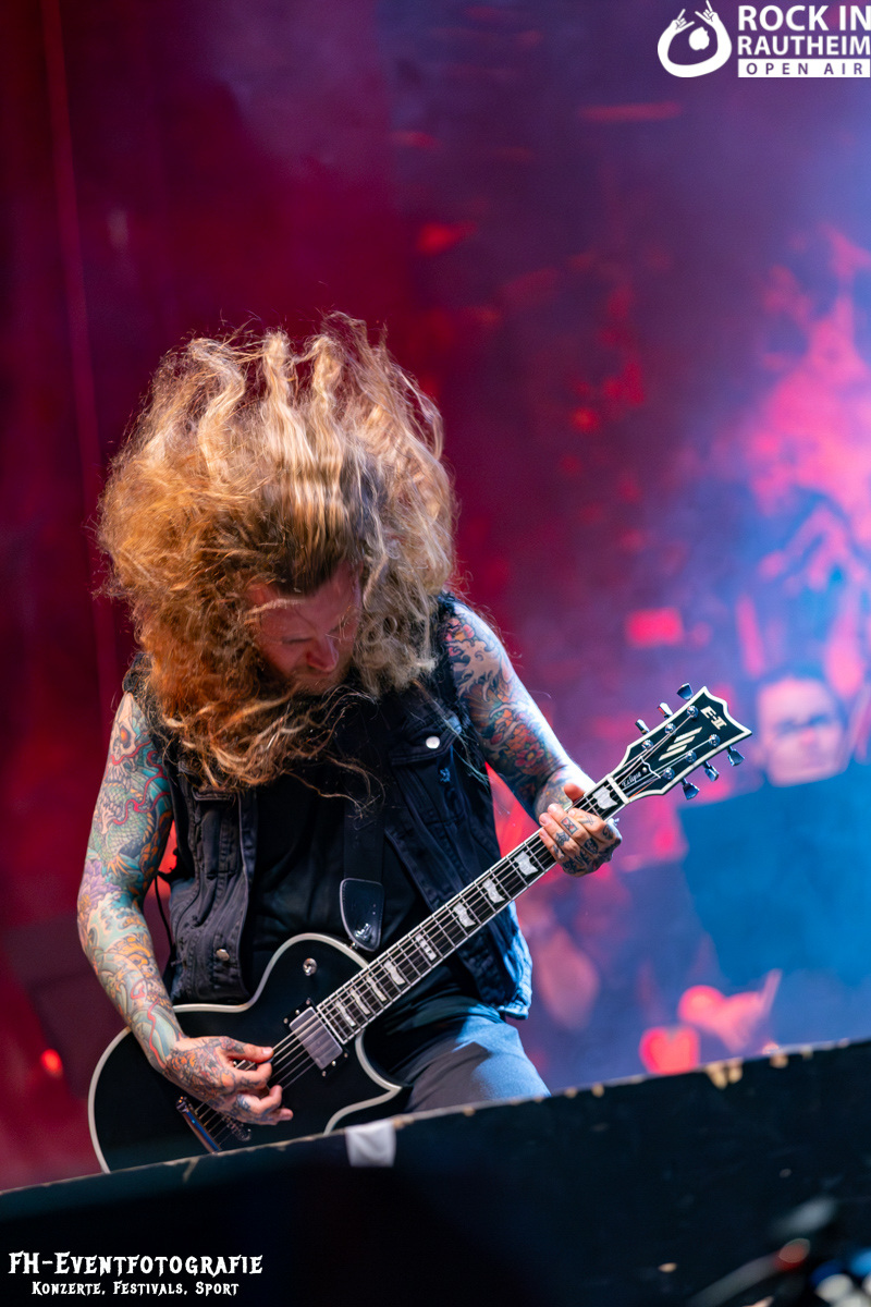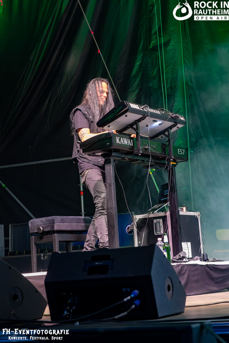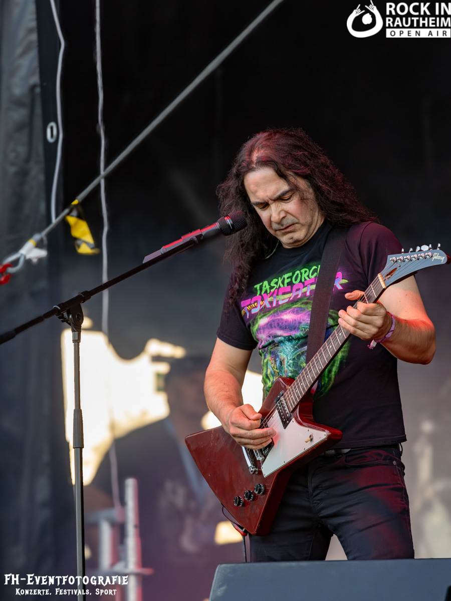 Nun kam der grandiose Abschluss des ersten Tages des Rock in Rautheim. Es betraten Rage und das Lingua Mortis Orchester der TU Braunschweig die Bühne. Über eine Stunde spielten sich die Herren aus Herne durch Nebel, Licht und Feuer in die Herzen der rund 2000 Fans vor der Bühne. Zum Glück für uns alle war Peavy bei bester Stimme. Kein Anzeichen mehr von einer Unbill, die Rage den Tourauftakt etwas eingetrübt hatte. Er spielte und er sang so großartig, wie ihn wohl alle in Erinnerung hatten. Diese Urgesteine gibt es bereits seit rund 40 Jahren und das zelebrierten sie aus vollen Zügen. Sie spielten fast schon eine Werkshow. Vieles, womit sie zu der Größe der deutschen Metal-Szene geworden sind, wurde dank des unterstützenden Orchesters geradezu zelebriert. Einige absolute Perlen der frühen Jahre dieser einzigartigen Band blieben bei der „Kürze“ des Slots leider auf der Strecke. Aber gleichwohl war das ein wirklich großartiges Konzert und kann als Dank für den ersten Tag dieses Festivals auch für alle Beteiligten gesehen werden. Wenn sich alle wohlfühlen, läuft es einfach.
