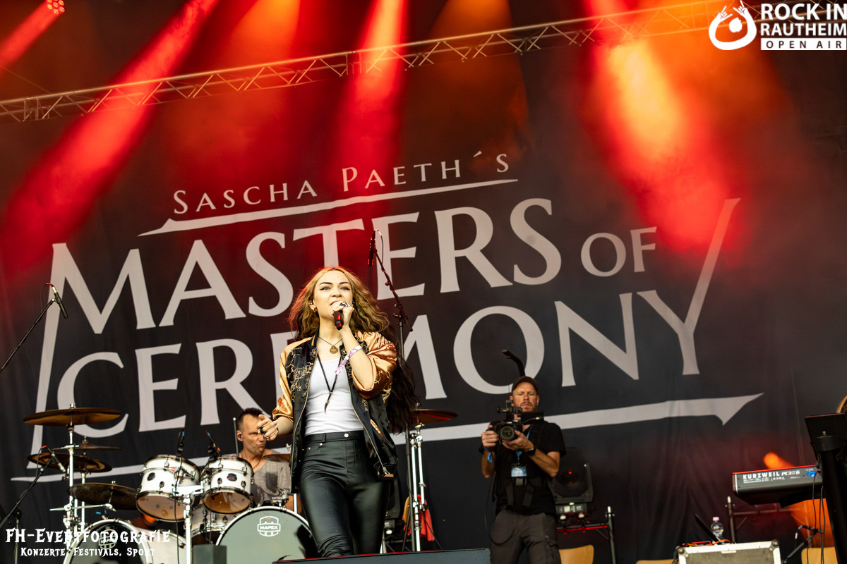 Den vierten Slot hatten dann Sascha Paeth’s Masters Of Ceremony. Die Band ist schon lokal verankert. Nur der Keyboarder und die großartige Sängerin sind Gäste. Aber sehr liebgewonnene Gäste. Diese illustre Runde spielte ein Madley aus den alten Heavens-Gate-Klassikern. Ich glaube, viele der Anwesenden, hatten bis dahin nur wenig Kontakt zur Musik von eben jener Band. Ich kann mir aber kaum vorstellen, dass das nach diesem Auftritt so geblieben ist. Klar, Heavens Gate hatten keine Adrienne Cowan als Sängerin. Das änderte an der Power dieser Klassiker aber mal so gar nichts. Ganz im Gegenteil, ich hatte eine Menge Fans der alten Stunden gehört, die das Konzert und die Stücke dank Adrienne feierten. Natürlich durften auch einige Gäste bei so einem Konzert nicht fehlen. Das war eine unglaublich emotionale Hommage an die alten Zeiten. Ich gehe jede Wette ein, wenn Heavens Gate noch einmal zusammen spielen würden, sie würden jede Halle in unserer Region voll bekommen. Aber das dürfte genauso unwahrscheinlich sein, wie Pink Floyd noch einmal in voller Besetzung zu erleben.