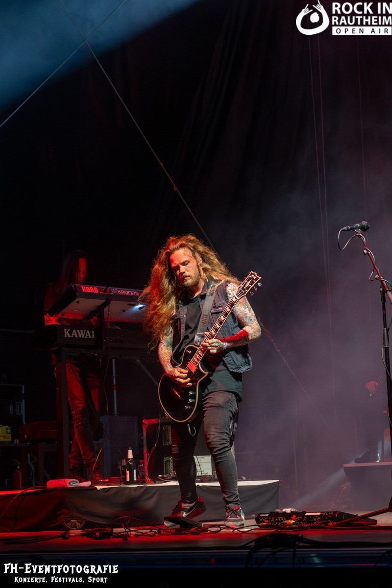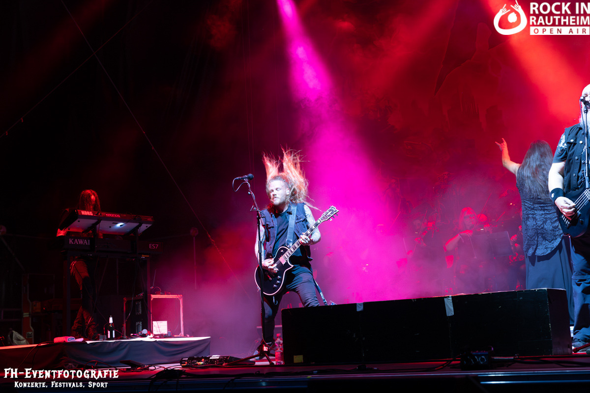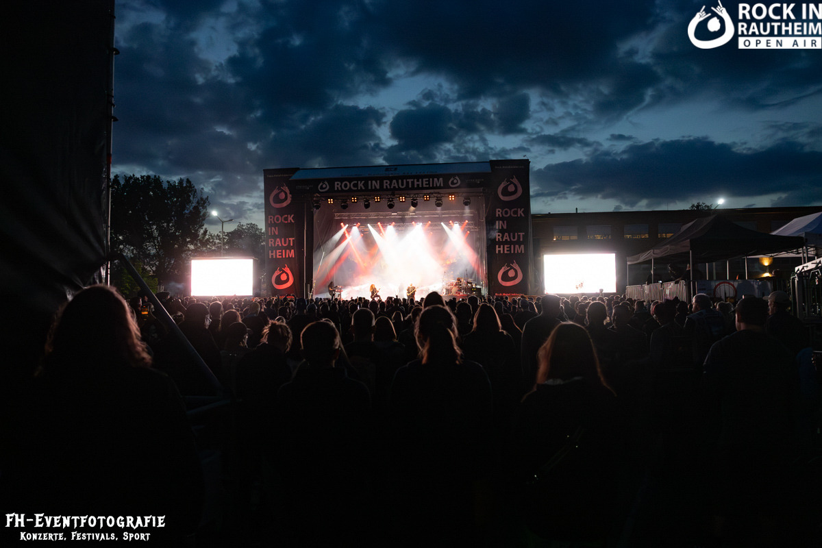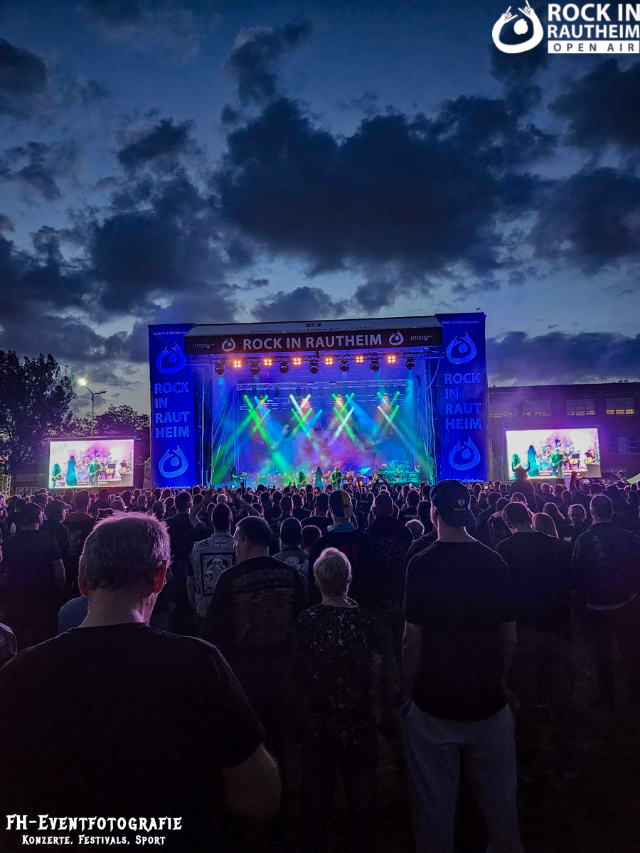 Nun kam der grandiose Abschluss des ersten Tages des Rock in Rautheim. Es betraten Rage und das Lingua Mortis Orchester der TU Braunschweig die Bühne. Über eine Stunde spielten sich die Herren aus Herne durch Nebel, Licht und Feuer in die Herzen der rund 2000 Fans vor der Bühne. Zum Glück für uns alle war Peavy bei bester Stimme. Kein Anzeichen mehr von einer Unbill, die Rage den Tourauftakt etwas eingetrübt hatte. Er spielte und er sang so großartig, wie ihn wohl alle in Erinnerung hatten. Diese Urgesteine gibt es bereits seit rund 40 Jahren und das zelebrierten sie aus vollen Zügen. Sie spielten fast schon eine Werkshow. Vieles, womit sie zu der Größe der deutschen Metal-Szene geworden sind, wurde dank des unterstützenden Orchesters geradezu zelebriert. Einige absolute Perlen der frühen Jahre dieser einzigartigen Band blieben bei der „Kürze“ des Slots leider auf der Strecke. Aber gleichwohl war das ein wirklich großartiges Konzert und kann als Dank für den ersten Tag dieses Festivals auch für alle Beteiligten gesehen werden. Wenn sich alle wohlfühlen, läuft es einfach.