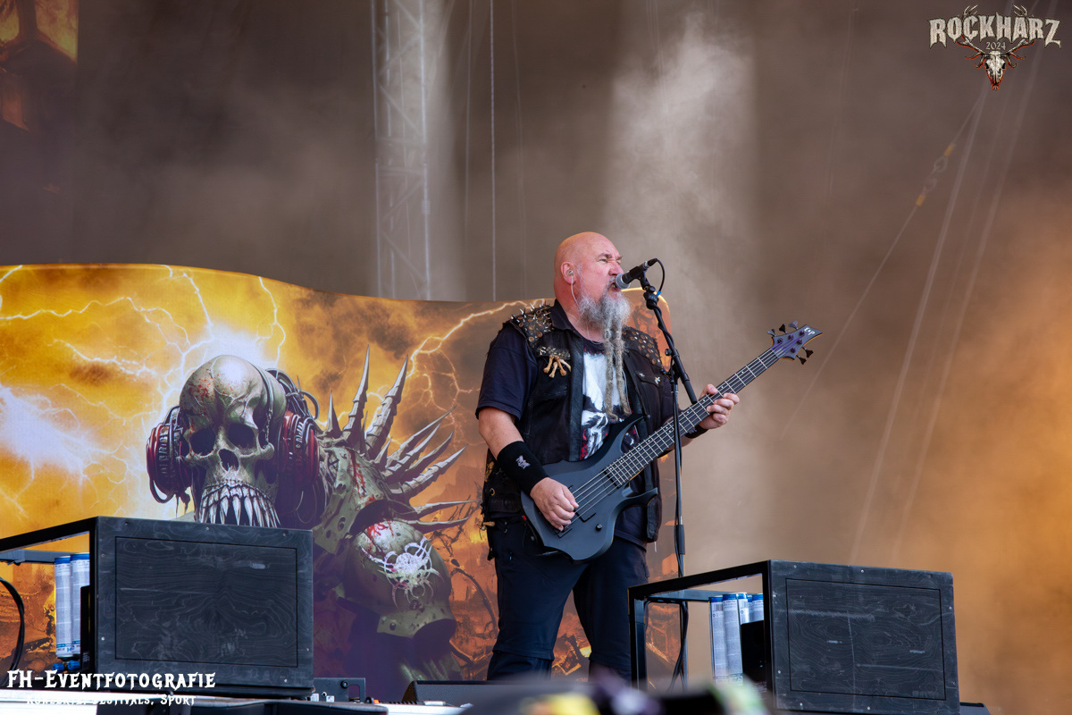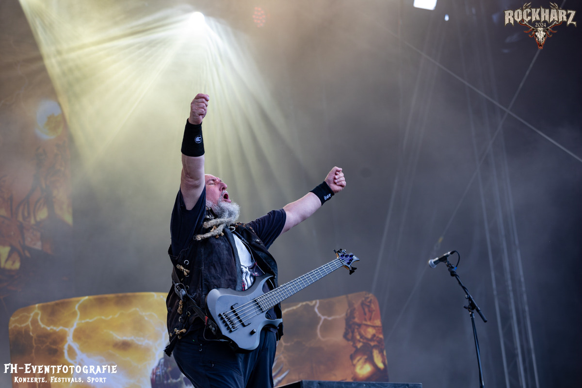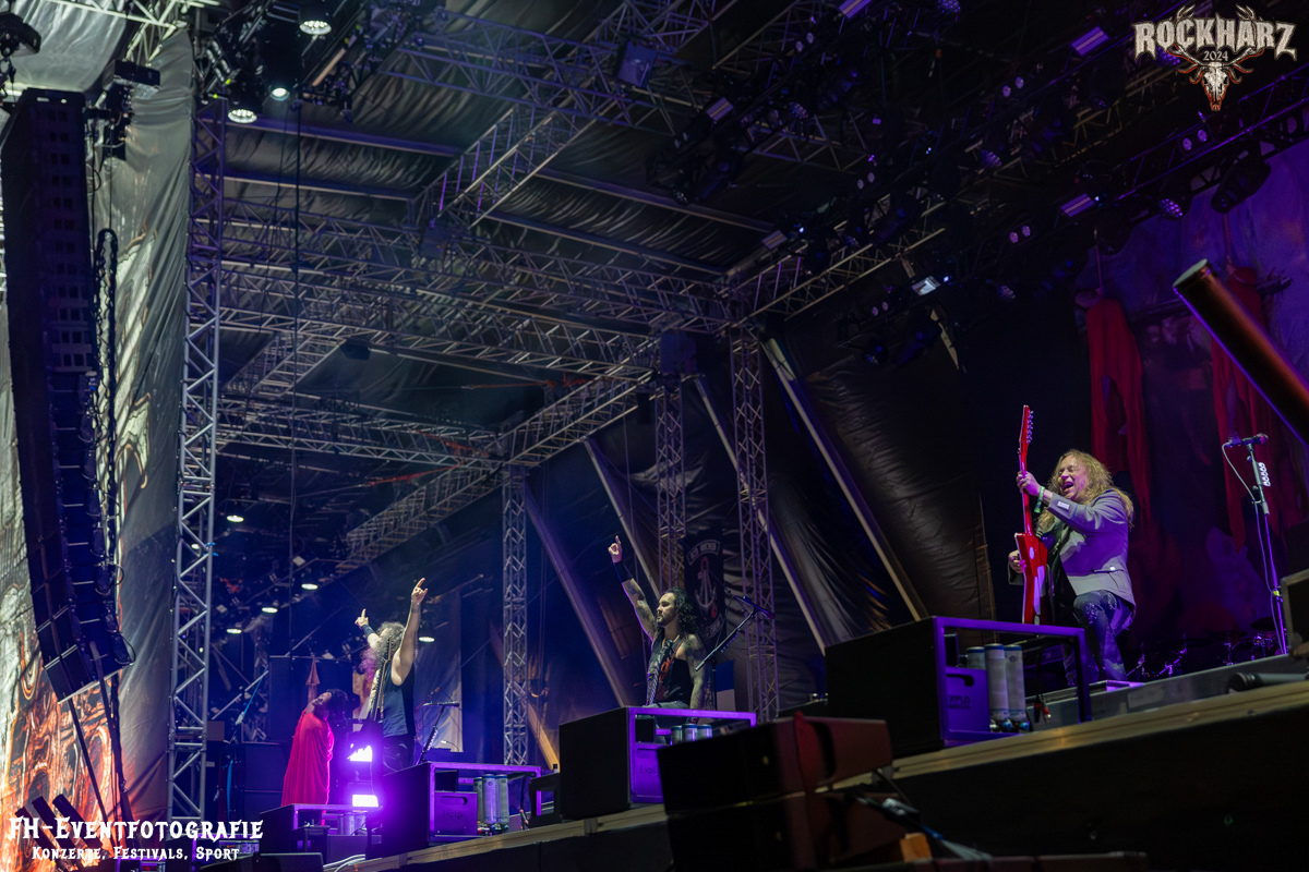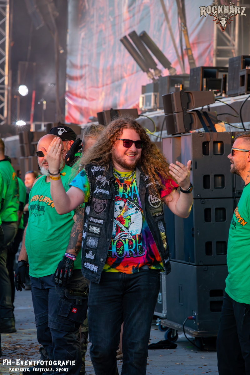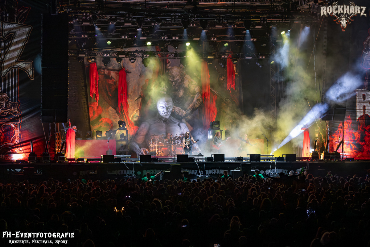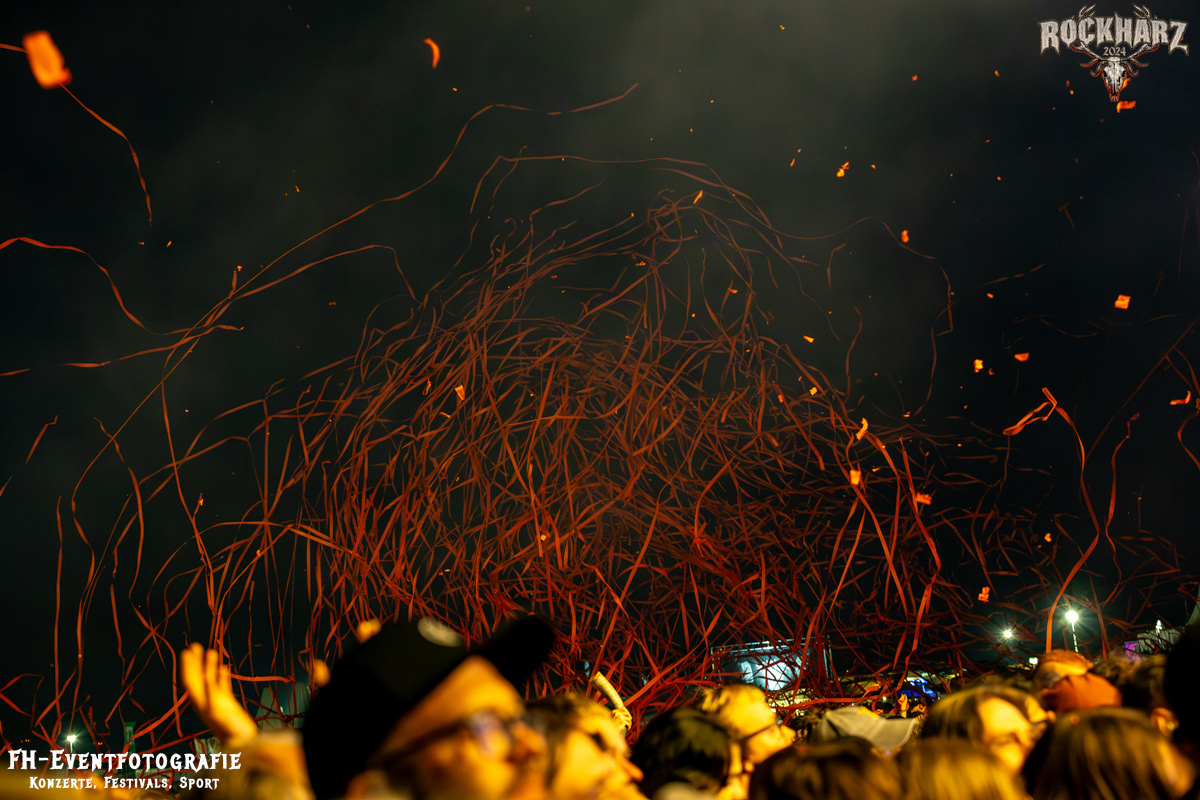 Kreator hatten bereits in den Wochen zuvor bei einigen Open-Air-Konzerten reichlich für Lautstärke gesorgt. Auch auf dem Rockharz 2024 waren sie sicher die Lautesten. Klang aber trotzdem sauber und sehr geil. Mille und Co. spielten volles Programm, fast alles war ihre Bandgeschichte an Hits zur Verfügung stehen haben. Von „Hail To The Hordes“ über »Phobia«, mit dem sie Ihren Gig starteten und „Pleasure To Kill“, mit dem sie ihren Gig beendeten. Warum, neben einer Menge Flammen und CO2-Fontänen gab es auch einen Papierschlangenregen. Keine Ahnung, weswegen Papierschlangen, aber hey, es war Kreator und sie hatten Spaß. Also auch alle anderen.