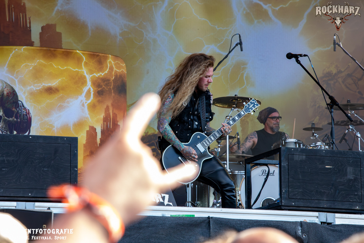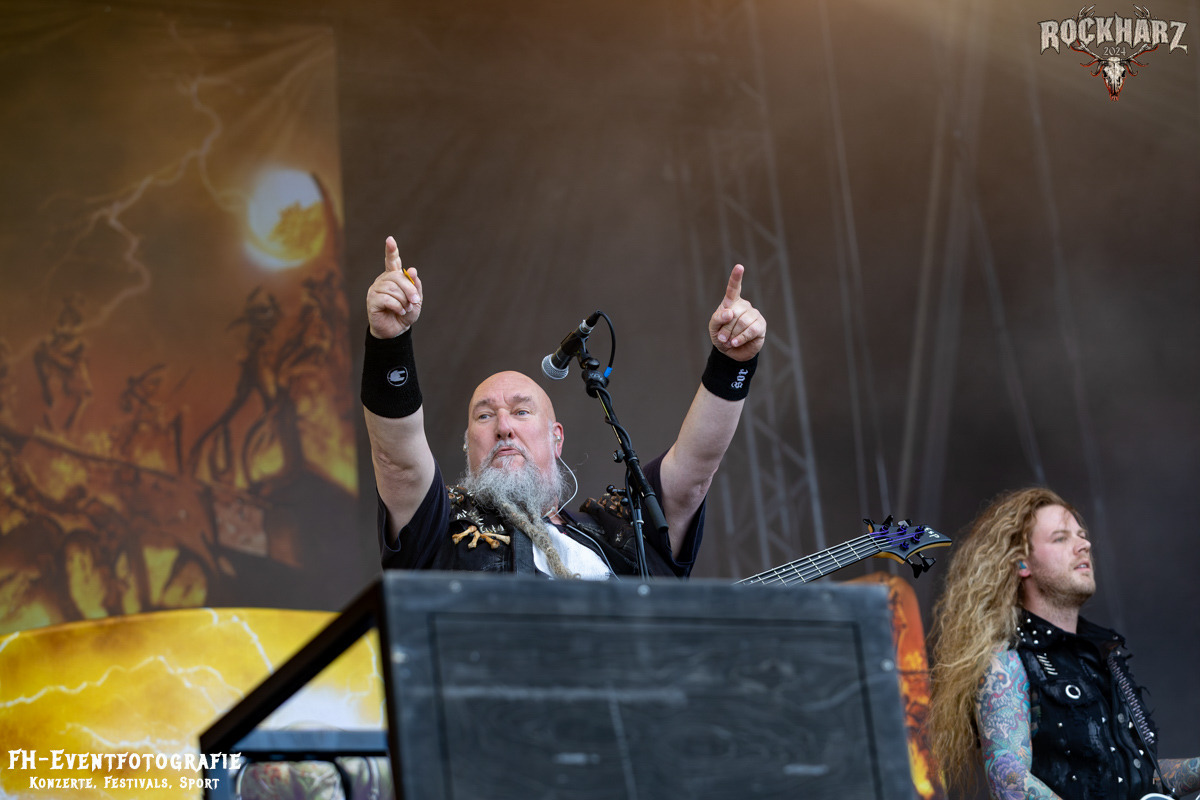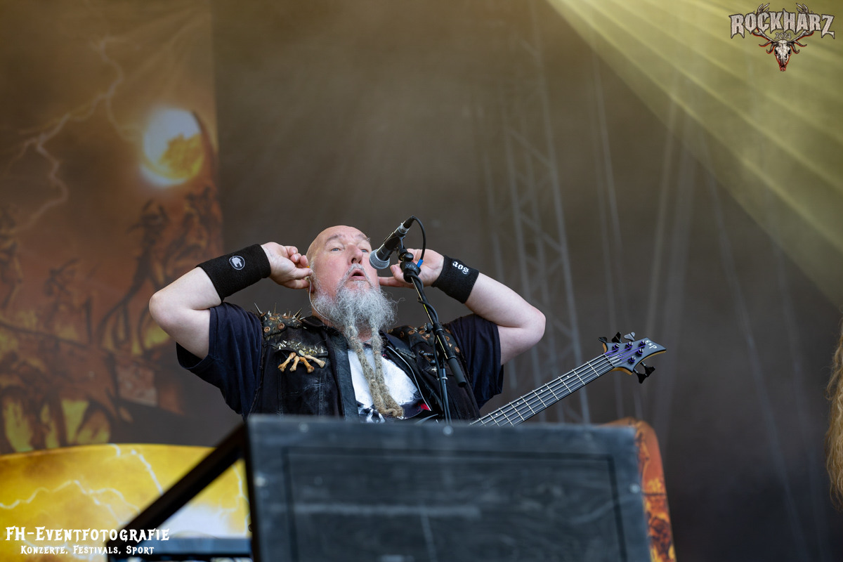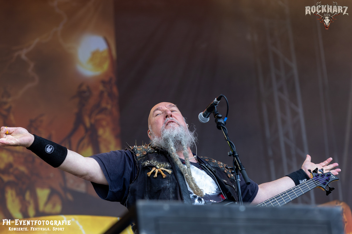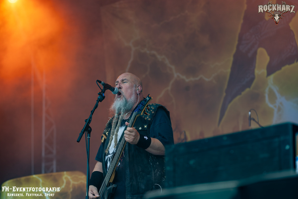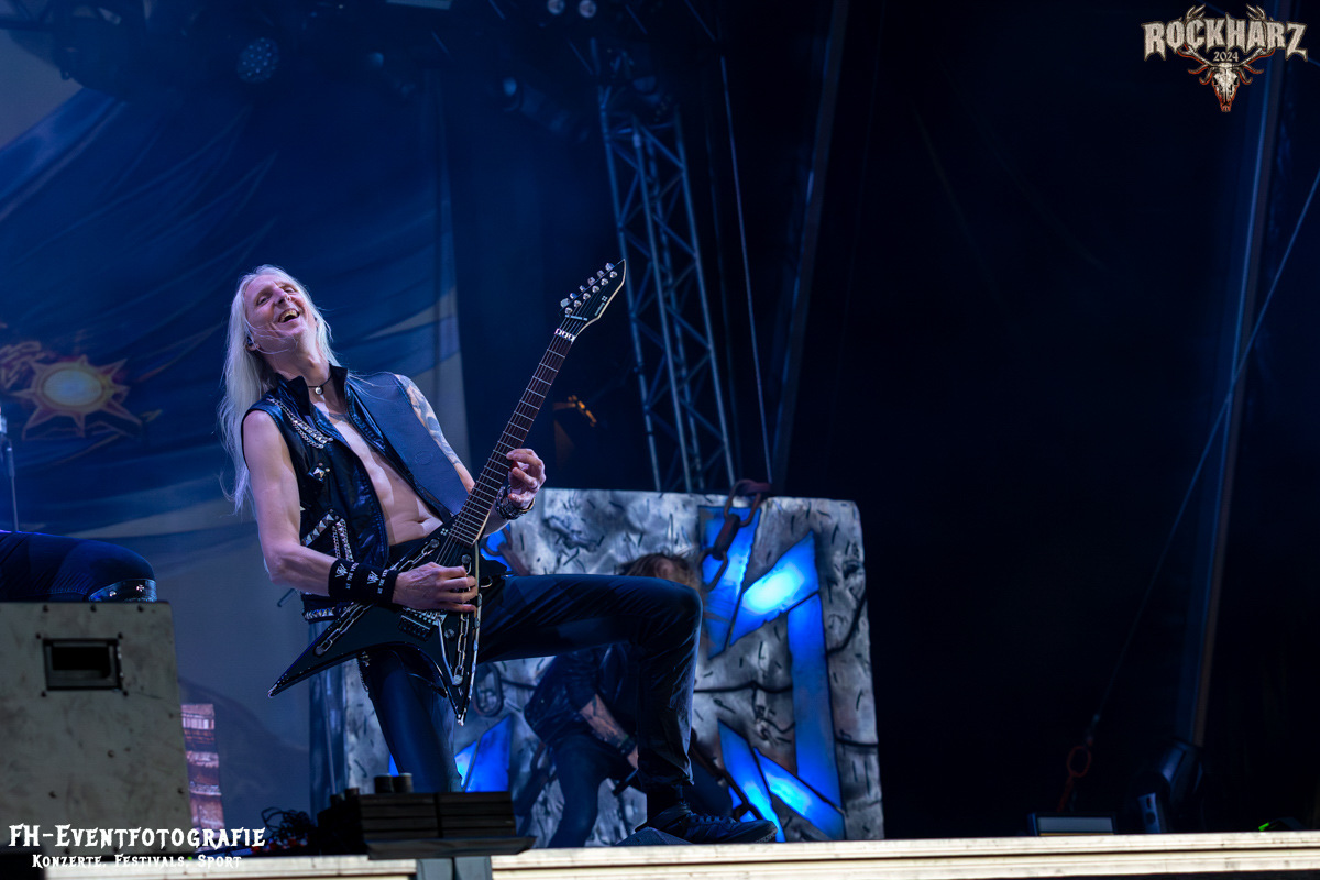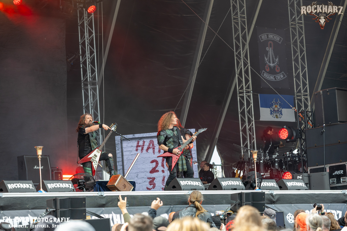 Kreator hatten bereits in den Wochen zuvor bei einigen Open-Air-Konzerten reichlich für Lautstärke gesorgt. Auch auf dem Rockharz 2024 waren sie sicher die Lautesten. Klang aber trotzdem sauber und sehr geil. Mille und Co. spielten volles Programm, fast alles war ihre Bandgeschichte an Hits zur Verfügung stehen haben. Von „Hail To The Hordes“ über »Phobia«, mit dem sie Ihren Gig starteten und „Pleasure To Kill“, mit dem sie ihren Gig beendeten. Warum, neben einer Menge Flammen und CO2-Fontänen gab es auch einen Papierschlangenregen. Keine Ahnung, weswegen Papierschlangen, aber hey, es war Kreator und sie hatten Spaß. Also auch alle anderen.