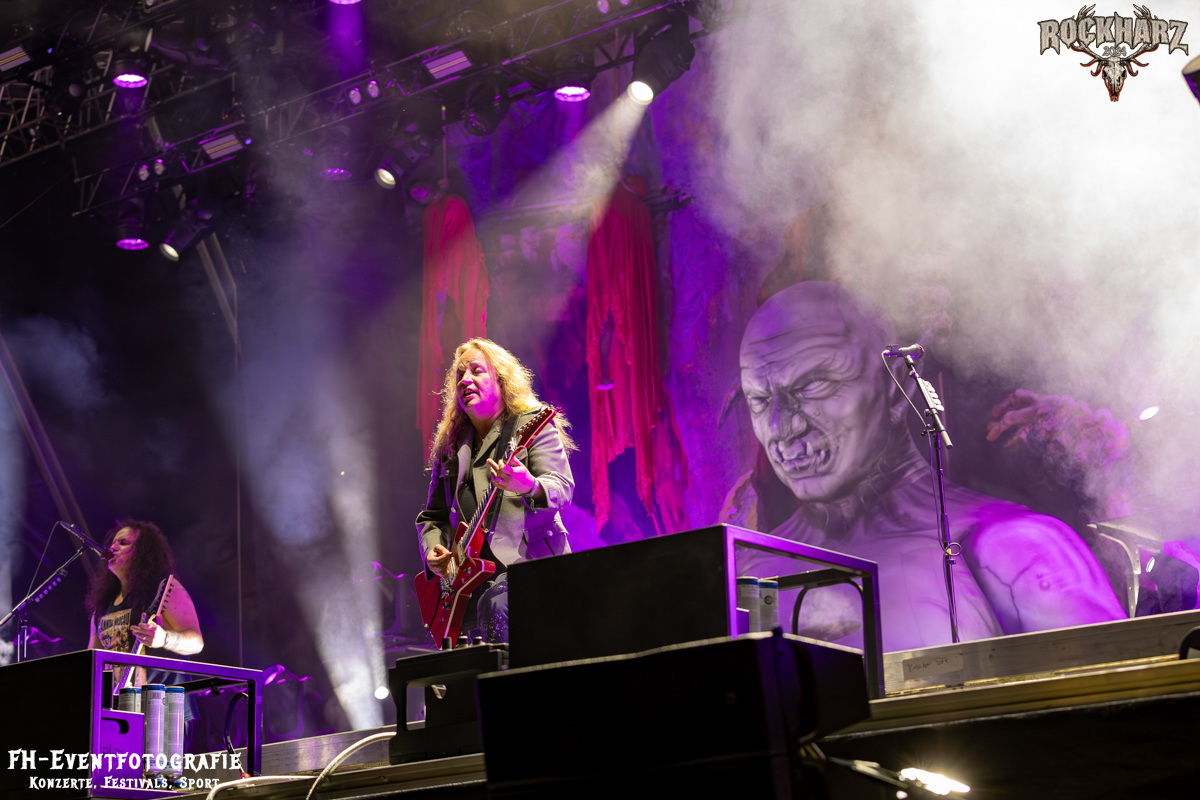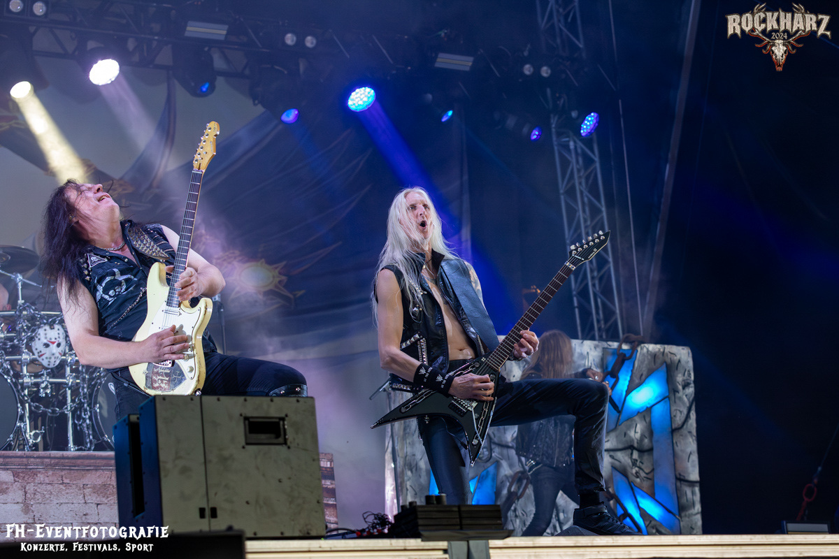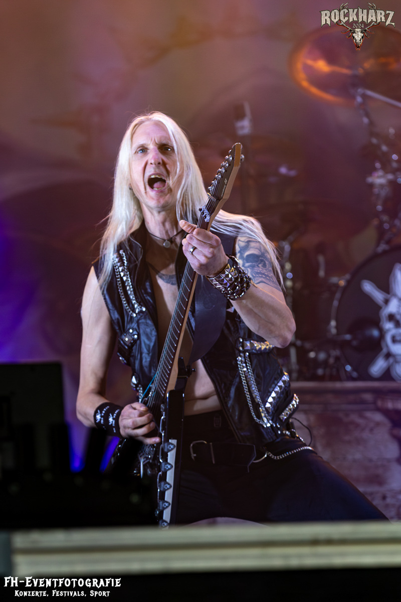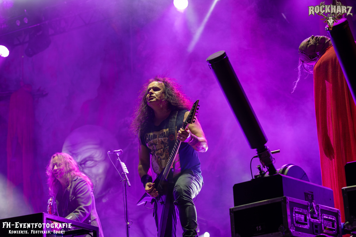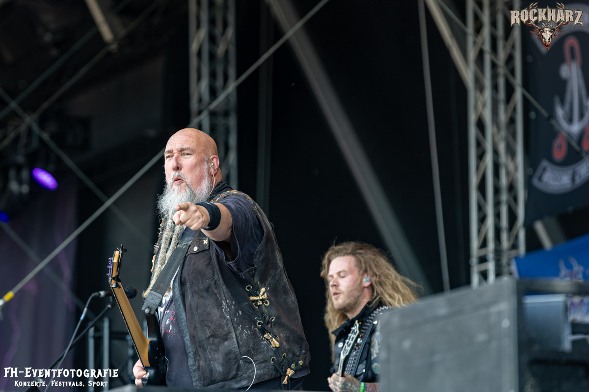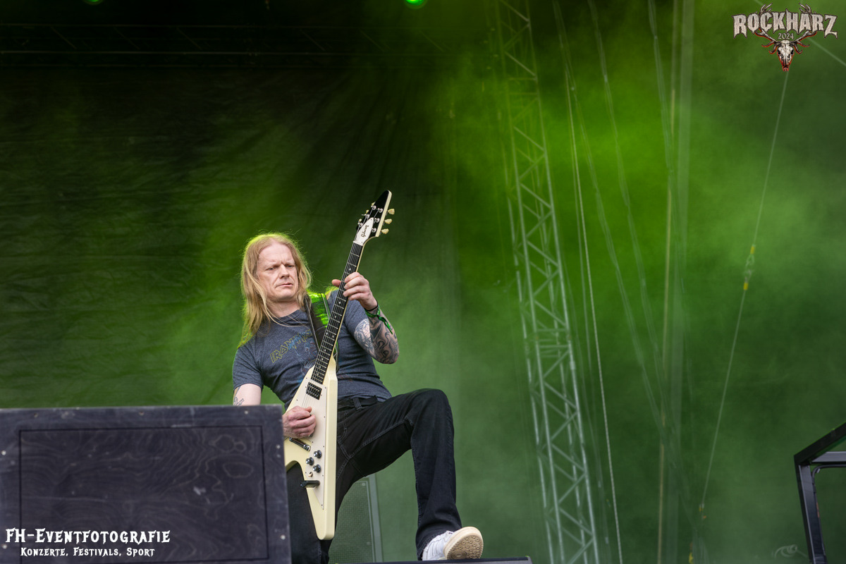 Kreator hatten bereits in den Wochen zuvor bei einigen Open-Air-Konzerten reichlich für Lautstärke gesorgt. Auch auf dem Rockharz 2024 waren sie sicher die Lautesten. Klang aber trotzdem sauber und sehr geil. Mille und Co. spielten volles Programm, fast alles war ihre Bandgeschichte an Hits zur Verfügung stehen haben. Von „Hail To The Hordes“ über »Phobia«, mit dem sie Ihren Gig starteten und „Pleasure To Kill“, mit dem sie ihren Gig beendeten. Warum, neben einer Menge Flammen und CO2-Fontänen gab es auch einen Papierschlangenregen. Keine Ahnung, weswegen Papierschlangen, aber hey, es war Kreator und sie hatten Spaß. Also auch alle anderen.