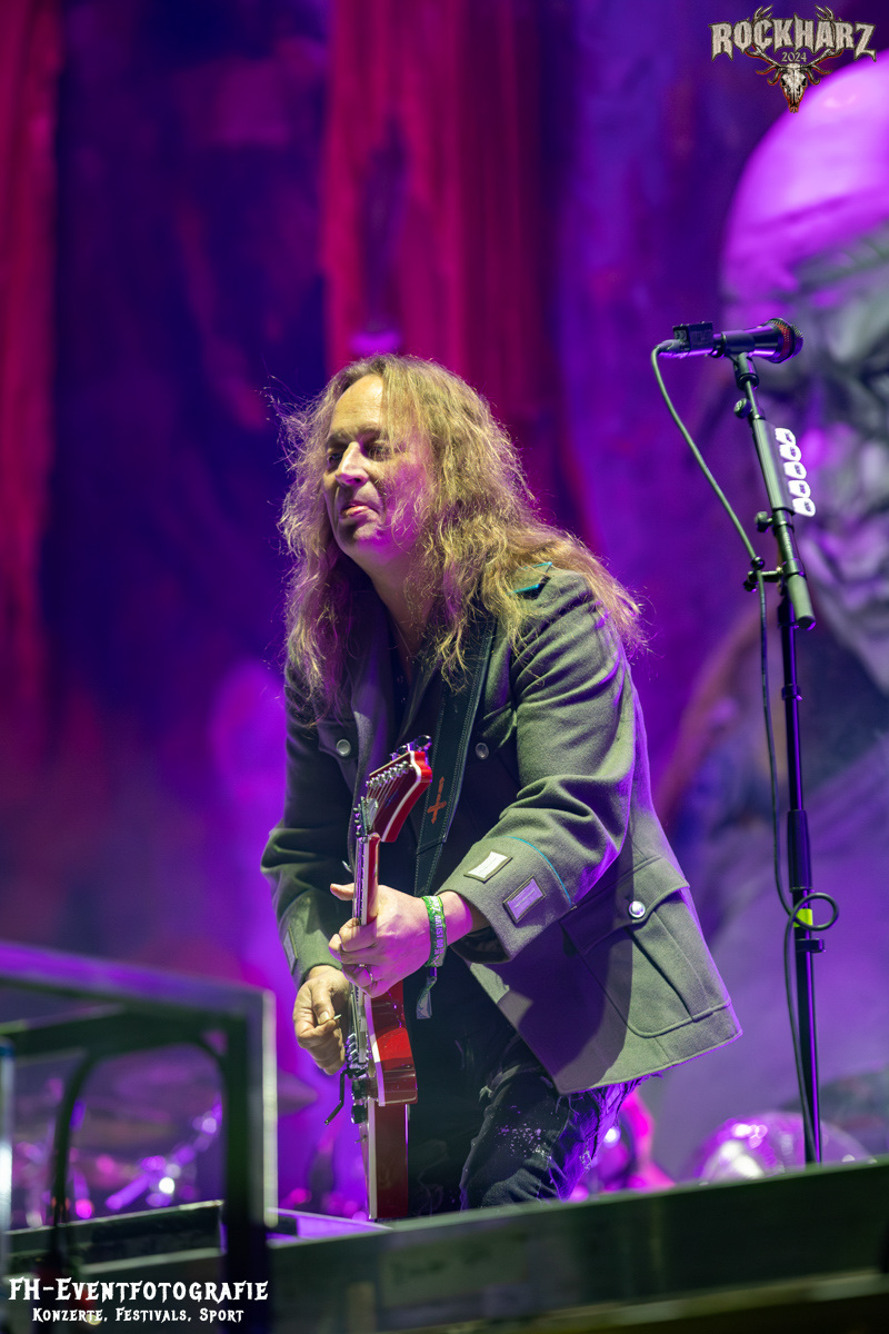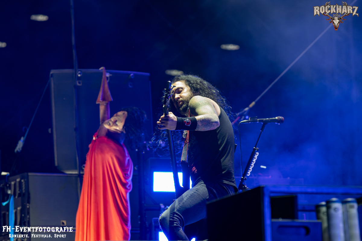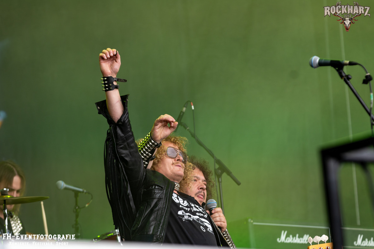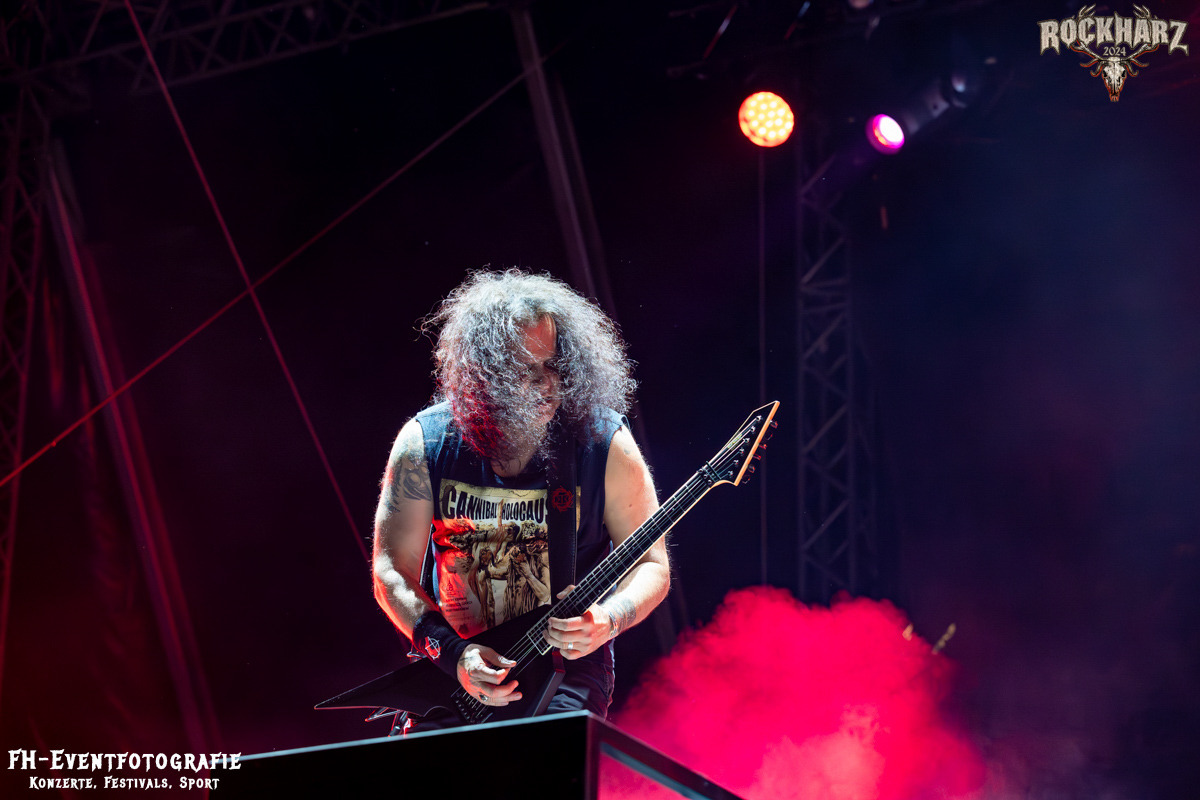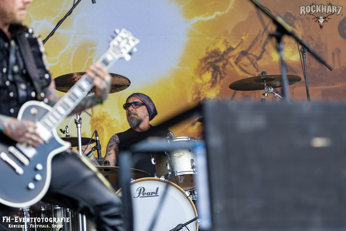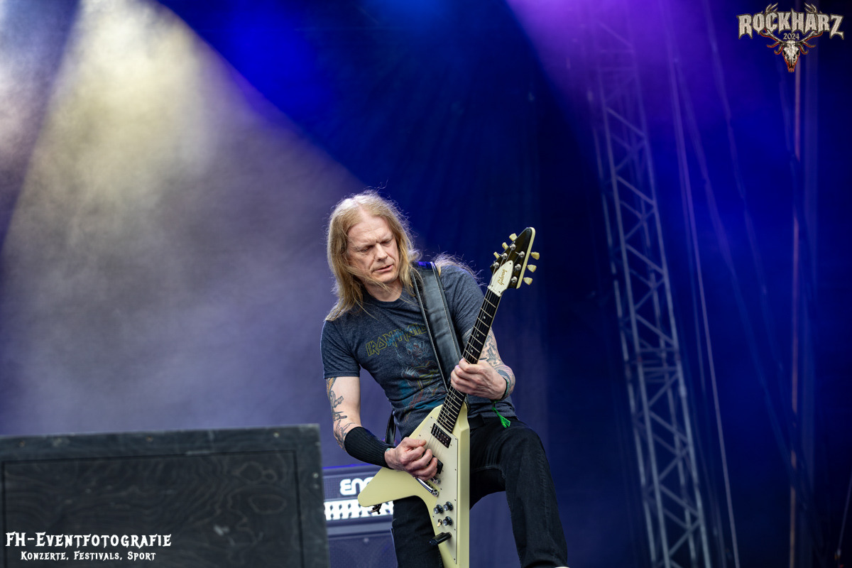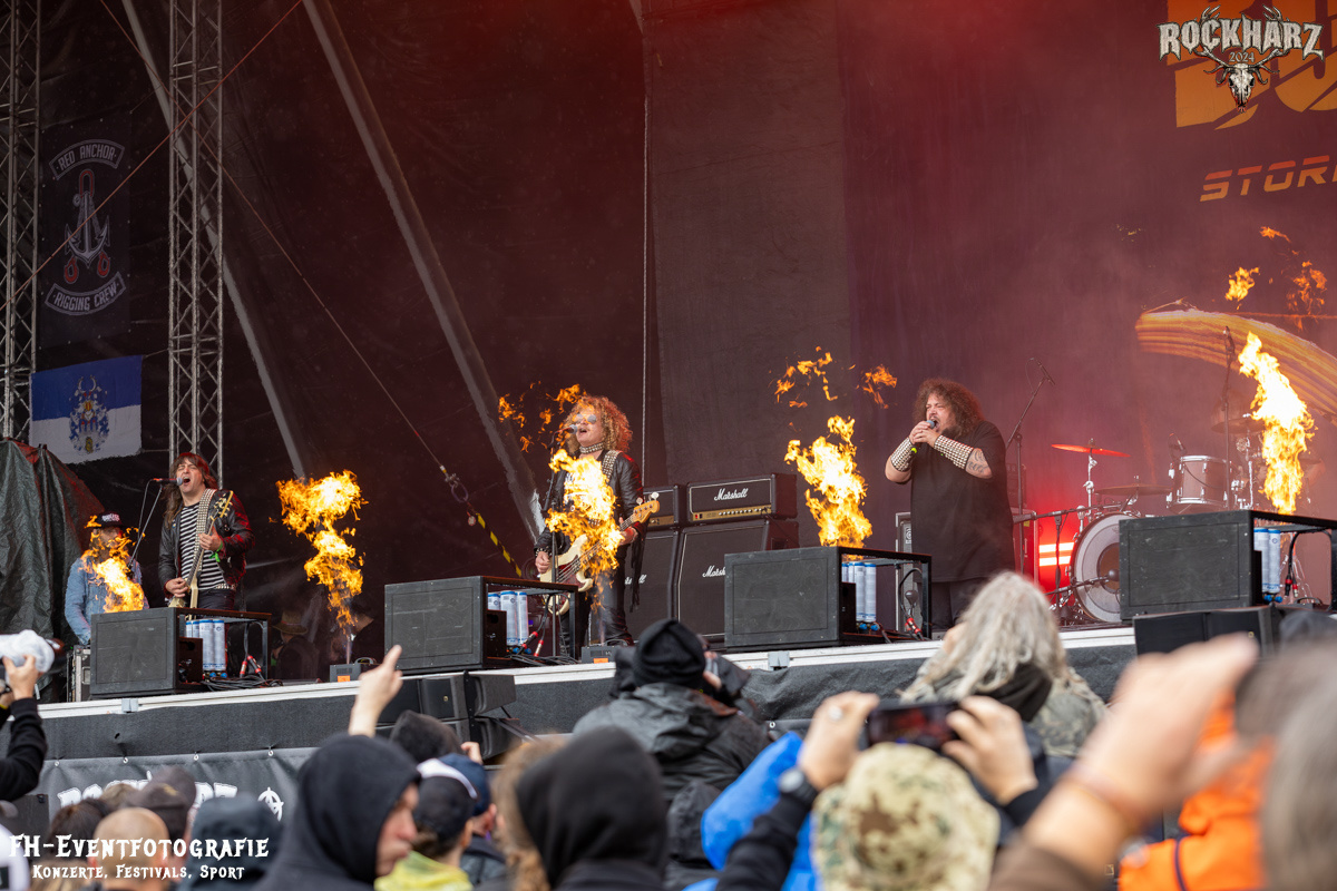 Kreator hatten bereits in den Wochen zuvor bei einigen Open-Air-Konzerten reichlich für Lautstärke gesorgt. Auch auf dem Rockharz 2024 waren sie sicher die Lautesten. Klang aber trotzdem sauber und sehr geil. Mille und Co. spielten volles Programm, fast alles war ihre Bandgeschichte an Hits zur Verfügung stehen haben. Von „Hail To The Hordes“ über »Phobia«, mit dem sie Ihren Gig starteten und „Pleasure To Kill“, mit dem sie ihren Gig beendeten. Warum, neben einer Menge Flammen und CO2-Fontänen gab es auch einen Papierschlangenregen. Keine Ahnung, weswegen Papierschlangen, aber hey, es war Kreator und sie hatten Spaß. Also auch alle anderen.