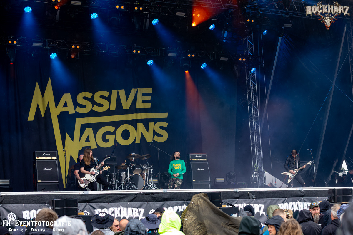 Somit hatten die Musikliebhaber vor der Bühne auch bei Massive Wagons noch eine gute Abkühlung. Das war auch notwendig, den die Herren aus dem nordenglischen Carnforth kannten, ein solches Wetter augenscheinlich und ließen nichts anbrennen. Guter gradliniger Rock, ohne Schnörkel und Zierrat, hat einfach eine Solidität, die sich durch keinen Sturm oder Regenschauer dieser Erde in seine Schranke weisen lässt. Leider gewann dann im Laufe der kommenden Tage die Natur doch über die Feierlaune der Festivalbesucher. Dazu aber die Tage mehr.