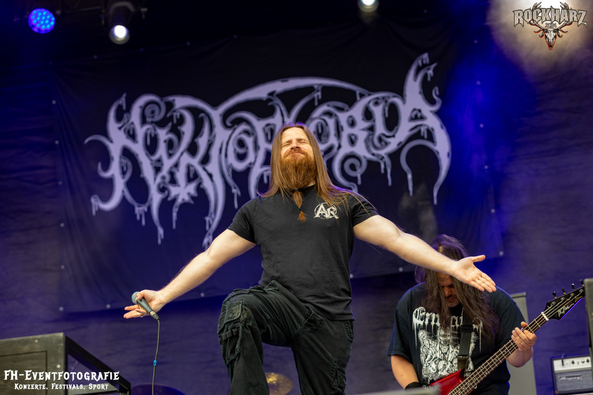 Nyktophobia erwartete mich. Eins mag mal unumwunden als passend für diese Band einzuordnen sein. Den passend zum Bandnamen haben die Herren aus NRW zu prallem Sonnenschein gespielt. Ihr epischer Melodic Death Metal hätte sicher mit fettem Schattenspiel und Licht enorm an Bühnenpräsenz gewonnen, hätten sie trotz ihrer Angst vor der Dunkelheit zu deutlich späterer Stunde gespielt. Gleichwohl war das ein rein musikalischer Leckerbissen und ein wunderbares Hallo auf dem Infield.