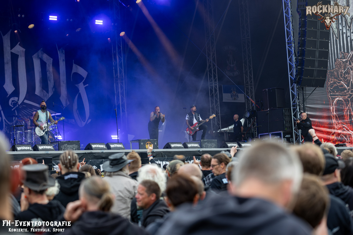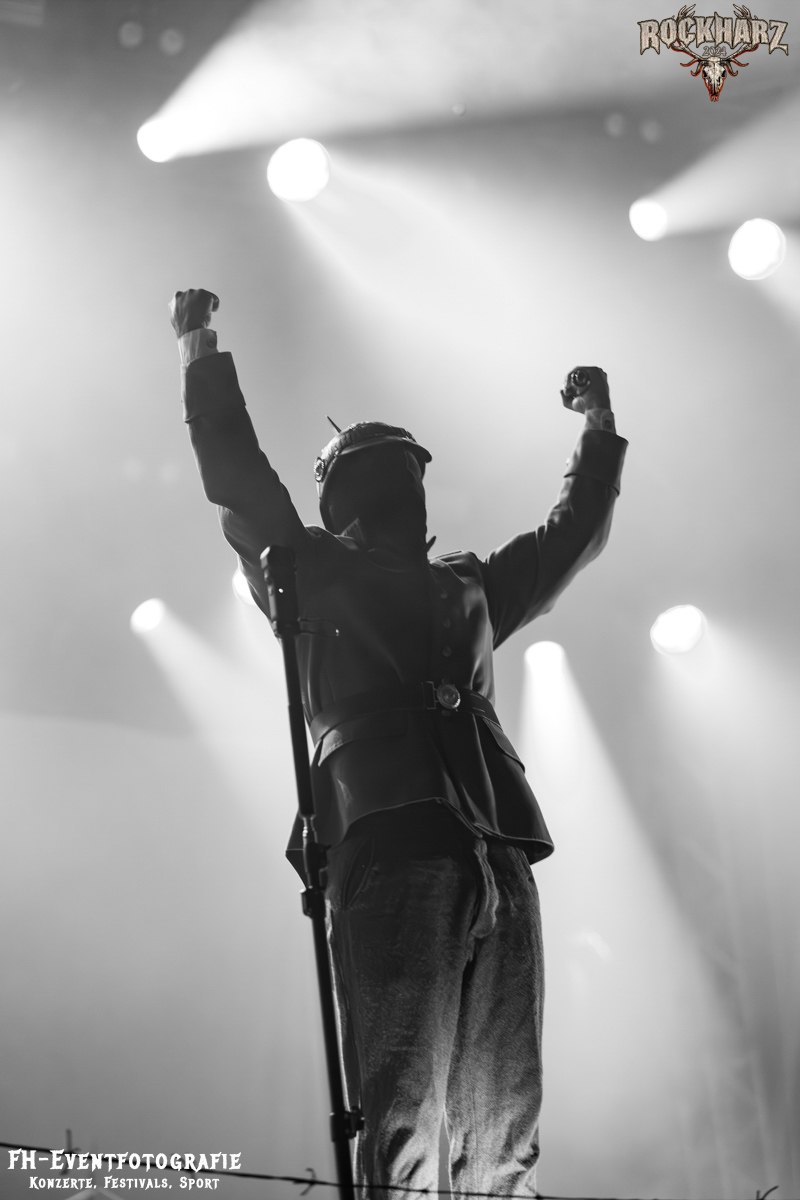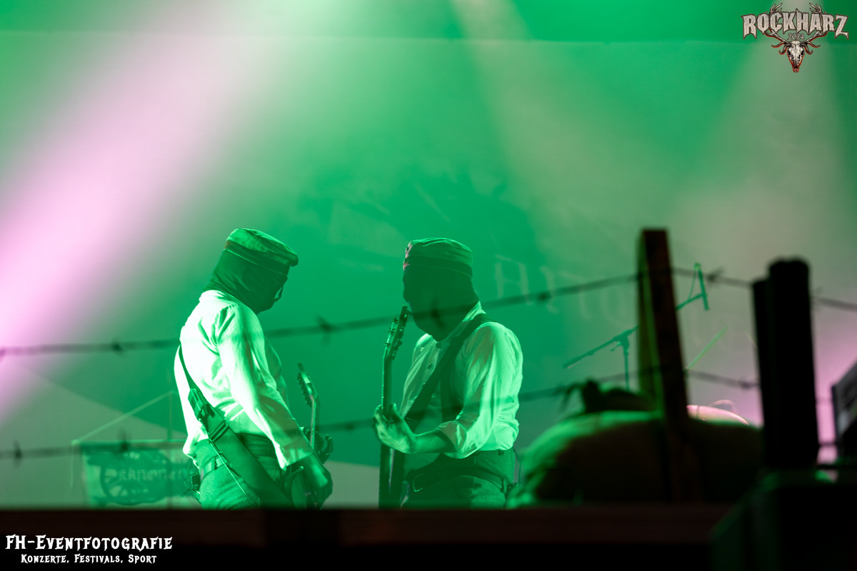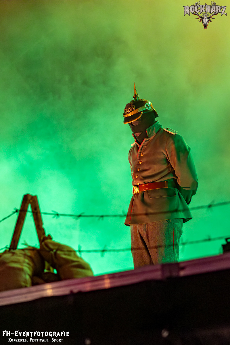 Im Anschluss übernahmen Kärbholz die Bühne. Das Rockharz ist aus seinen Ursprüngen ja „Rock gegen Rechts“. Somit ist bis heute gesichert, dass das Festival ohne seltsames Gedankengut auskommt. Aus dieser Tradition heraus ist also klipp und klar, dass weder die Band Kärbholz noch die Afterheadliner Kanonenfieber in dieses Gedankengut reinreichen. Die Kärbholzer machen einfach Spaß und die Kanonenfieberer sind schon fast Kunst. Dank der richtig fetten Show mit viel Pyro, Flammen und Nebel gab der Bamberger Musiker mit seinen Guns einen Auftritt, der insgesamt ein Gesamtkunstwerk war, welcher den ersten Tag des Rockharz würdig abgeschlossen hatte. Aber bevor es zu Kanonenfiebers Auftritt kam, gab es noch vier Bands. Zwei davon waren schon in meinen Playlisten zu Zeiten, in denen es in Braunschweig noch die Meier Music Hall gab. Da wären Callejon und OOMPH!. Callejon hatten sich ja leider, muss ich nach deren Auftritt sagen, aus meinem Gedächtnis wirklich etwas geschummelt. Aber völlig zu Unrecht. So wie es ausschaut, sind die Bands, die sich selber, mit einem ausgelassenen, gar überbordenden Frohsinn auf der Bühne zeigen, auf dem Vormarsch. Ich habe Callejon wieder in meine Playlist aufgenommen. OOMPH! waren mit dem nun voll etablierten Herrn Schulz als Frontmann auf der Bühne. Ich hatte mir da die Zeit genommen, Bilder zu sortieren und etwas zu essen. Dabei hatte ich natürlich dem Konzert gelauscht. Es ist schon echt beeindruckend, wie nahe und gut Herr Schulz an Deros Gesangsstimme herankommt. Aber wenn er spricht, ist er halt der Schulz. Immer wieder ungewöhnlich, aber die Musik ist und bleibt einfach Teil meiner Jugend und sicher auch vieler anderer. Fehlen noch drei Auftritte. Da werde ich mich kurzfassen.