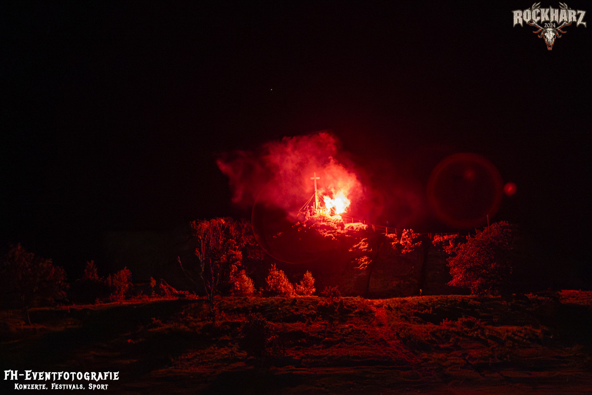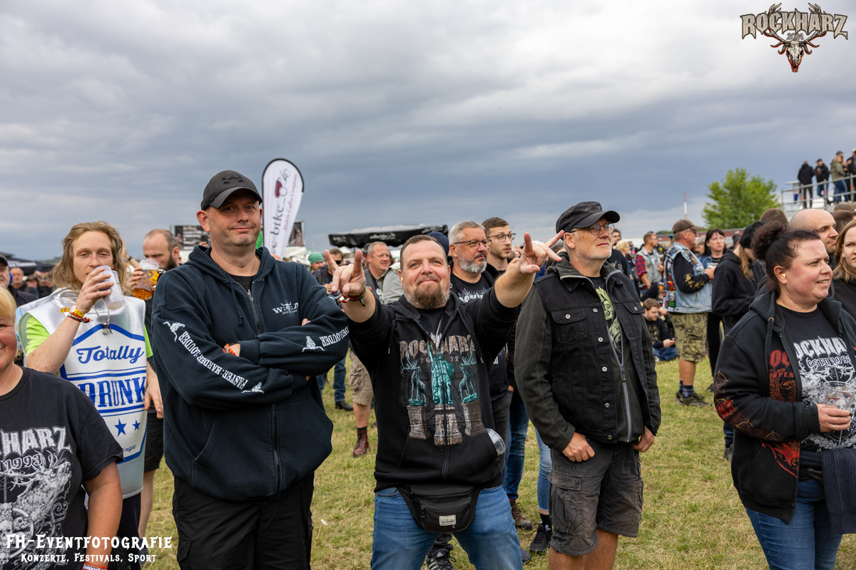Nach dem Check In ging es auf den Campground. Ja, ich war sicher etwas spät, aber 16 Uhr klang für mich als angepeilte Zielmarke passend. Mit 18 Uhr habe ich die dann leicht gerissen. Das Ergebnis wäre aber sicher, auch wenn ich pünktlich gewesen wäre, dasselbe gewesen. Die Jünger und Jüngerinnen des Rockharz waren bereits zu Tausenden auf dem Gelände. Nach diversem Anfahren und Abbremsen kam ich meinem Ziel näher. Durch die mit zwei Fahnen gekennzeichnete Einfahrt durch und ich war auf dem Campground für die beeinträchtigten Mitglieder der Metalfamilie. Für die hatte sich wie immer die Lebenshilfe Braunschweig als Partner des Rockharz mächtig ins Zeug gelegt. Und die, die auf solch ein Angebot mit umfassender Pflegemöglichkeiten und passenden Hygieneplätzen angewiesen sind, hatten sich auch mächtig ins Zeug gelegt, um mit Sack und Pack das Familienfest zu Füßen der Teufelsmauer genießen zu können. Lkws mit allem nötigen Komfort, Zelte, Wohnwagen, alles da und in Reichweite und das im eigenen gut kontrollierten Bereich nahe dem Infieldzugang. Also musste ich kurz Bescheid sagen und dann weiter bis zum zugewiesenen Campground. Den Diesmal hatte das Festival die Presse und das Camp um die Lebenshilfe zwar über dieselbe Zufahrt eingerichtet, aber doch getrennt untergebracht. Angekommen in unserem Areal warteten bereits einige Waagen, die mit Kolleginnen und Kollegen ihren Weg nach Ballenstedt gefunden hatten. Da waren so illustre Namen wie Twilight Magazin oder auch metal.de vertreten. Alles wirklich liebe Menschen. Nach den Rock & Metal Day’z und anderthalb Tagen Heimaturlaub also wieder zurück auf einen Acker bei Bier, Kamera, Stift und Zettel und selbstredend Musik. Wobei diesmal der Acker neben einer Landebahn war. Diesmal erwarteten mich einige Bands, die ich wie immer nicht kannte, und einige echte Größen der Szene. Darunter so prägende Bands wie Dimmu Borgir und Judas Priest. Aber auch eher ruhige Bands wie Van Canto und FAUN. Was blieb nach dem Aufbau noch zu machen? Platz frei halten für die, die da noch fehlten und den Pegel anheben, damit die kommenden Tage etwas leichter von der Hand gehen würden. Also erstaunlich früh ins Bett und um 10 wieder aus den Federn. Es warteten die ersten Bands. Start war sehr Festival und Langschläfer taugliche 15:30 Uhr. Und ich, der bequeme, manchmal sehr verpeilte Hund, hatte sich zum Helfen verleiten lassen, als für euch alle Bands mitzunehmen. Aber hilf deinen Freunden und die, die zu welchen werden, ist sicher eine gute Sache. Ich habe die Bilder von Fabian schon teils sehen können und das, was ich am Zeltplatz hörte, klang so, als ob ich schon bei der ersten Band was sehr Cooles verpasst hatte. Power-Metal aus Island. Weite Anreise, aber wer solch ein Setting wie Power Paladin hat und dann noch aus dem Land der Trolle und Elfen kommt, kann sich zu Füßen der Teufelsmauer nur wohlfühlen. Also dass die Band sich mal als reines Hobby bezeichnet hat, na ja, also ich muss sagen, keins meiner Hobbys ist auch nur in Ansätzen so gut und professionell wie diese Band es ist. Das trieb natürlich an, ganz fix beim Aufbauen, fertig zu werden, um dann auf das Infield zu gehen.