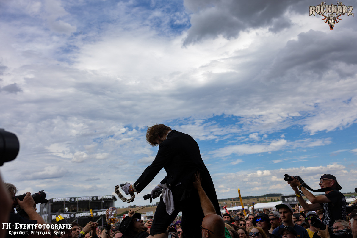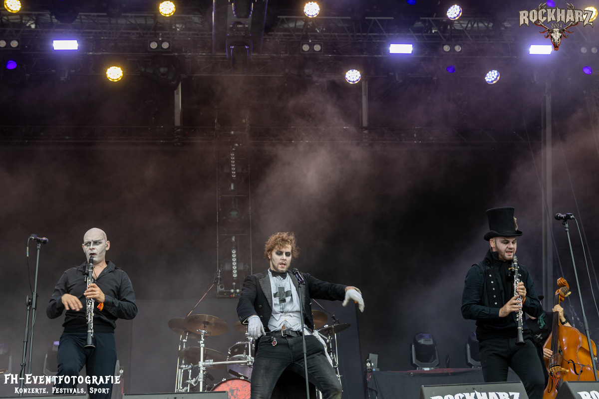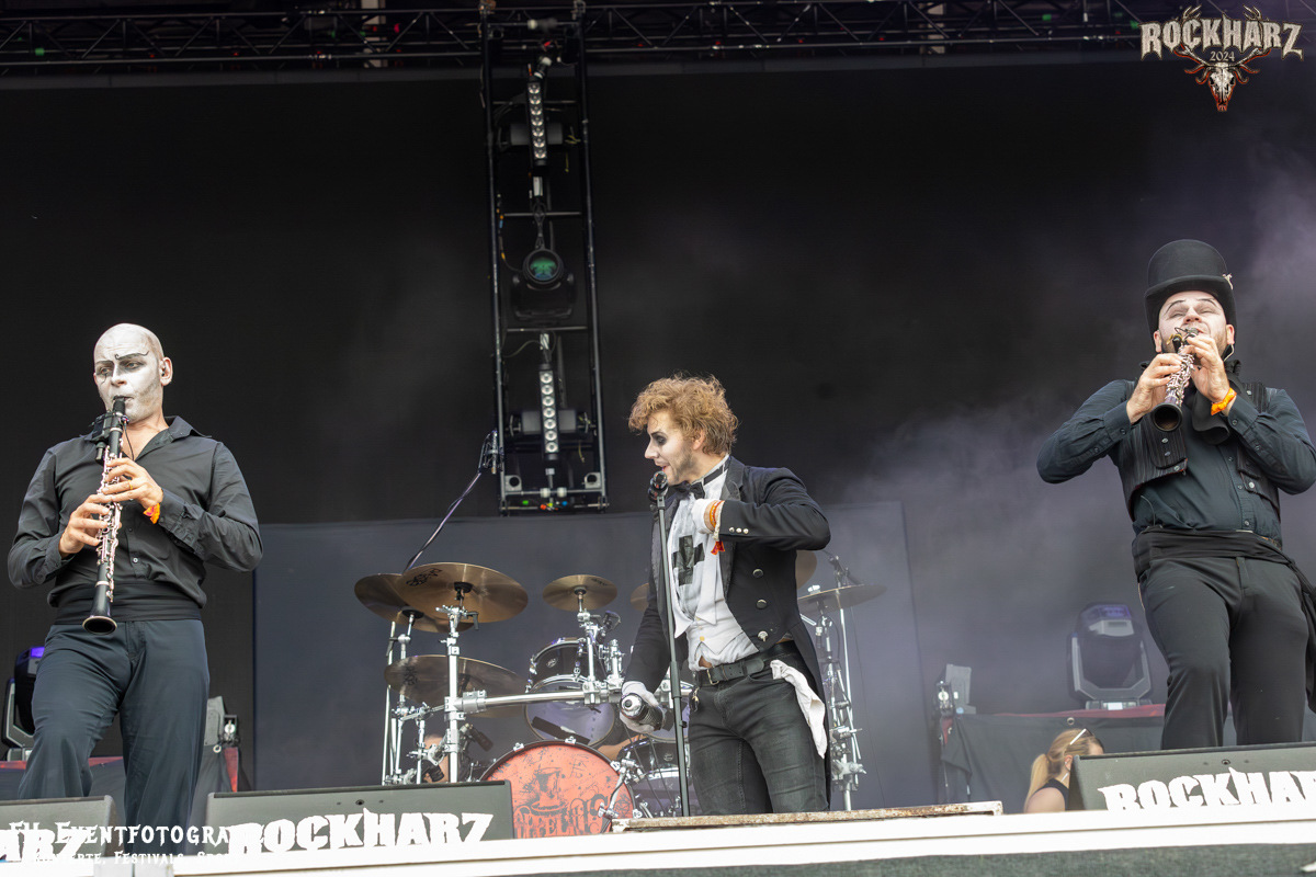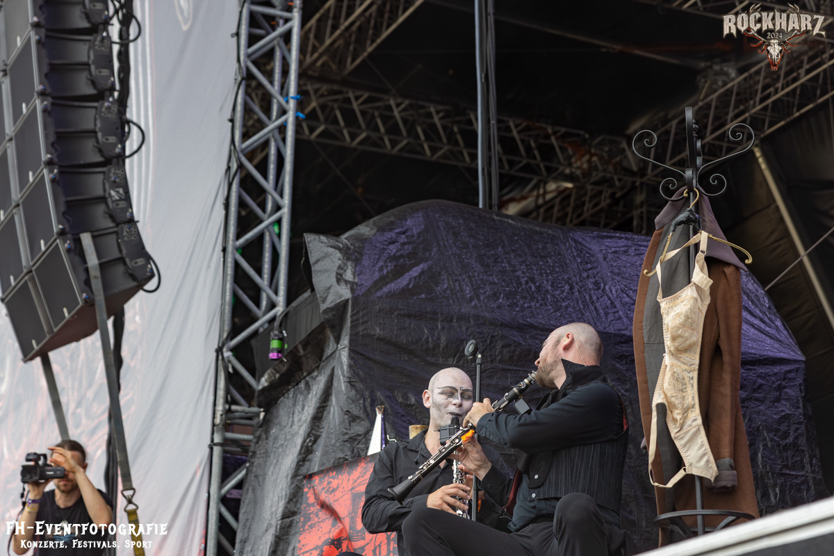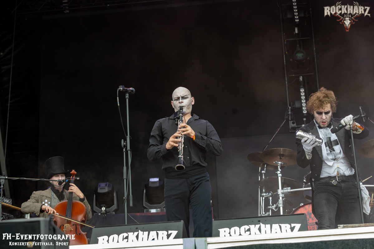 Die Band, die sich im Anschluss auf der Black Stage austobte, war ein wunderbares Beispiel dafür, dass die Genres sehr fließend sind. Und die Fangemeinschaften durchaus auch. Coppelius, hatte ich das erste Mal live auf dem Mittelalterteil des WGT in Leipzig erlebt und sogleich in mein Herz geschlossen. Immer wieder ein Genuss, diese irre Mischung aus Theater, Pantomime und großartiger Musik bestaunen zu dürfen. Bitte fragt nicht, ich kann beim besten Willen nicht sagen, wie man diese Musik nennt. Aber eins kann ich. Schaut euch die Band an. Es ist ein Erlebnis, ein richtig gutes und kurzweiliges Erlebnis. Danke an das Rockharz, dass sie auch dieser, doch durchaus sehr nischigen Band, eine so große Bühne bieten.