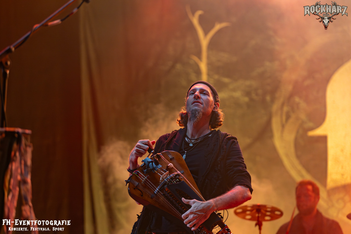 Nach dieser »Randale« wurde es beschaulich. Auf der Dark Stage spielten Schandmaul auf. Da es dem Meister der Stimme Thomas Lindner leider gesundheitlich noch nicht wieder möglich ist zu singen, beste weitere Genesungswünsche an dieser Stelle auch von uns, brachte »Schandmaul« ihre Show mit Gastsängern über und auf die Bühne. Anstelle des Herrn Lindner gab ein Herr Marco Klingel die Stimme für das Konzert und die da noch kommenden. Beide kennen sich und um den Vocal Coach nicht mit dem Gesang alleine zu lassen, tauchte auch noch »Alea der Bescheidenen« von »Saltatio Mortis« mit auf der Bühne auf. Ich hatte mir doch schon so was gedacht, als ich ihn nebst Gattin über das Festival habe streifen sehen. Auf der Bühne konnte also nichts schiefgehen und da Mastermind Lindner auch auf der Bühne war, gab es viele staunende Gesichter. Er spielte die Gitarre und bedankte sich bei den Fans. Gänsehautmoment und danach hatte ich auch noch den Ohrwurm des Tages. »Dein Anblick«, als Akustikversion und dazu bestimmt 20.000 Menschen, die diese Zeilen singen. Das muss ein unfassbares Gefühl für die Künstler auf der Bühne gewesen sein
