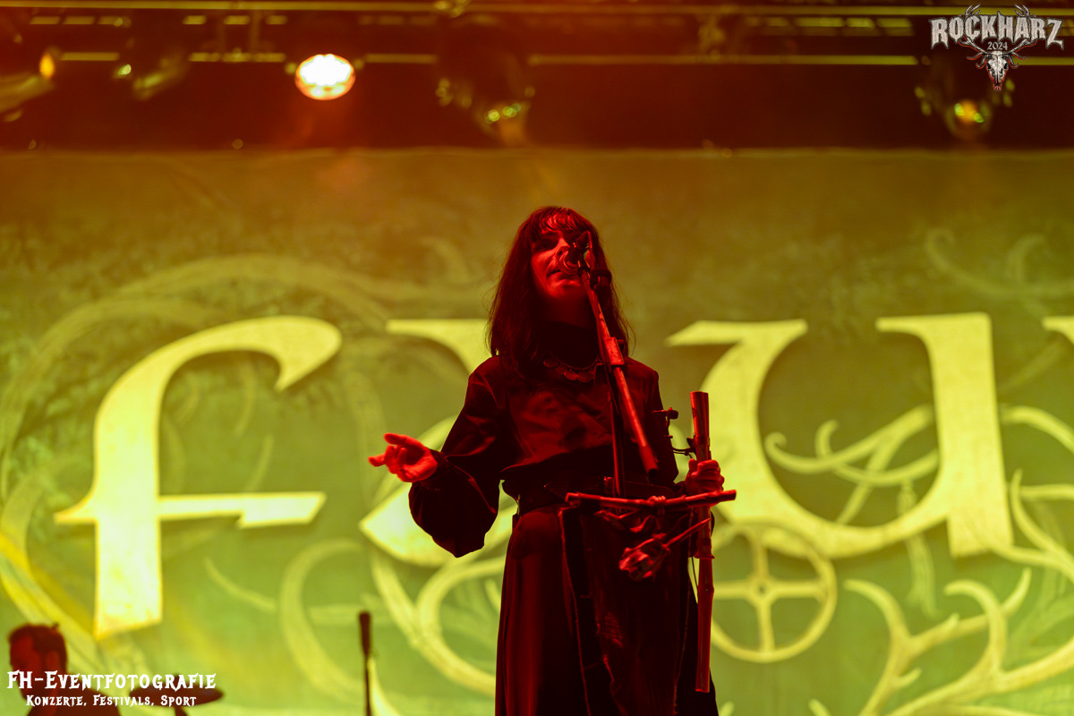 Den Trend zu viel Nebel und Gegenlicht, sodass die Welt in die Schatten abdriftet, nahm FAUN als letzte Band des Festivals dann voll mit. Ich hatte sie immer eher als eine fröhliche Band in Erinnerung. Hier unter der Teufelsmauer wurde ihr Auftritt eine leichter verdaubare Version eines Auftritts von „Heilung“. Ja, es war kein Ritual, das sich durch das Konzert zieht, aber die Mystik bauten sie auf. Viel Licht, das sich in den Nebeln auf der Bühne brach und die Bandmitglieder geradezu zu Schattenrissen werden ließ. Das war mal was vollkommen anderes und sicher nicht nur von mir so nicht erwartet worden. In den lichteren Momenten spielten sie dann natürlich auch die etwas heiteren Stücke. Wobei mit jedem Song die Gewissheit näher rückte, dass ein wahnsinnig tolles Festival seinem Ende entgegentri