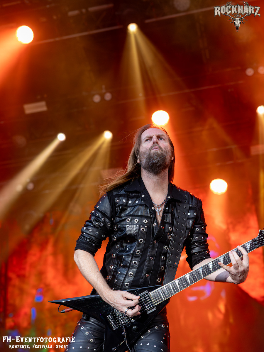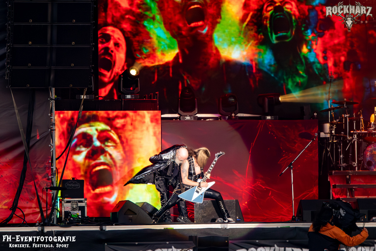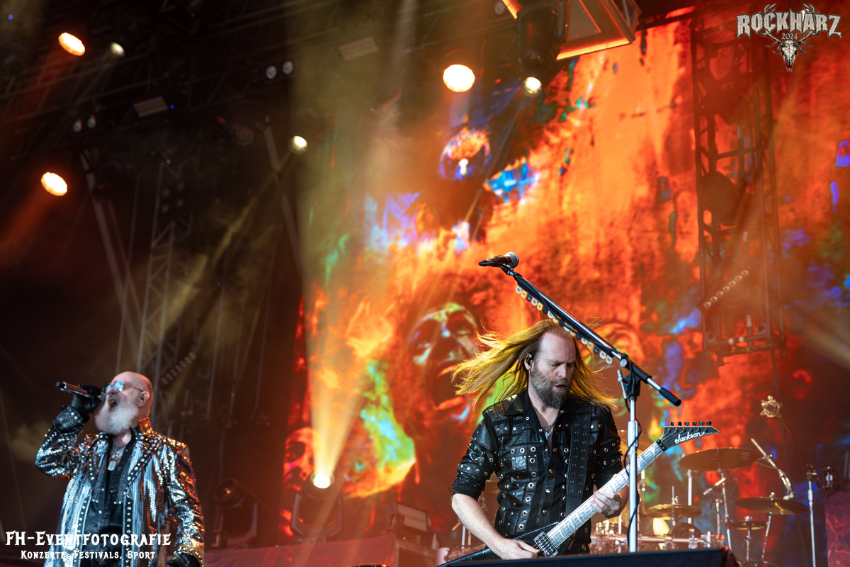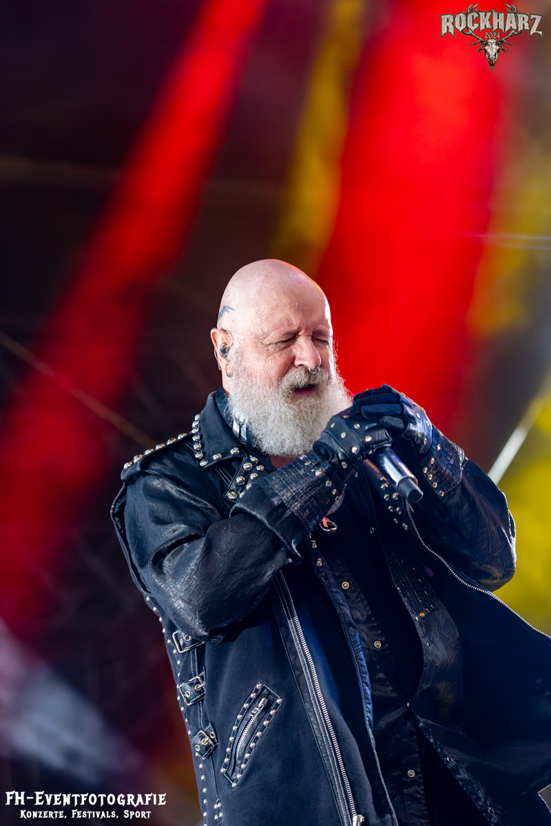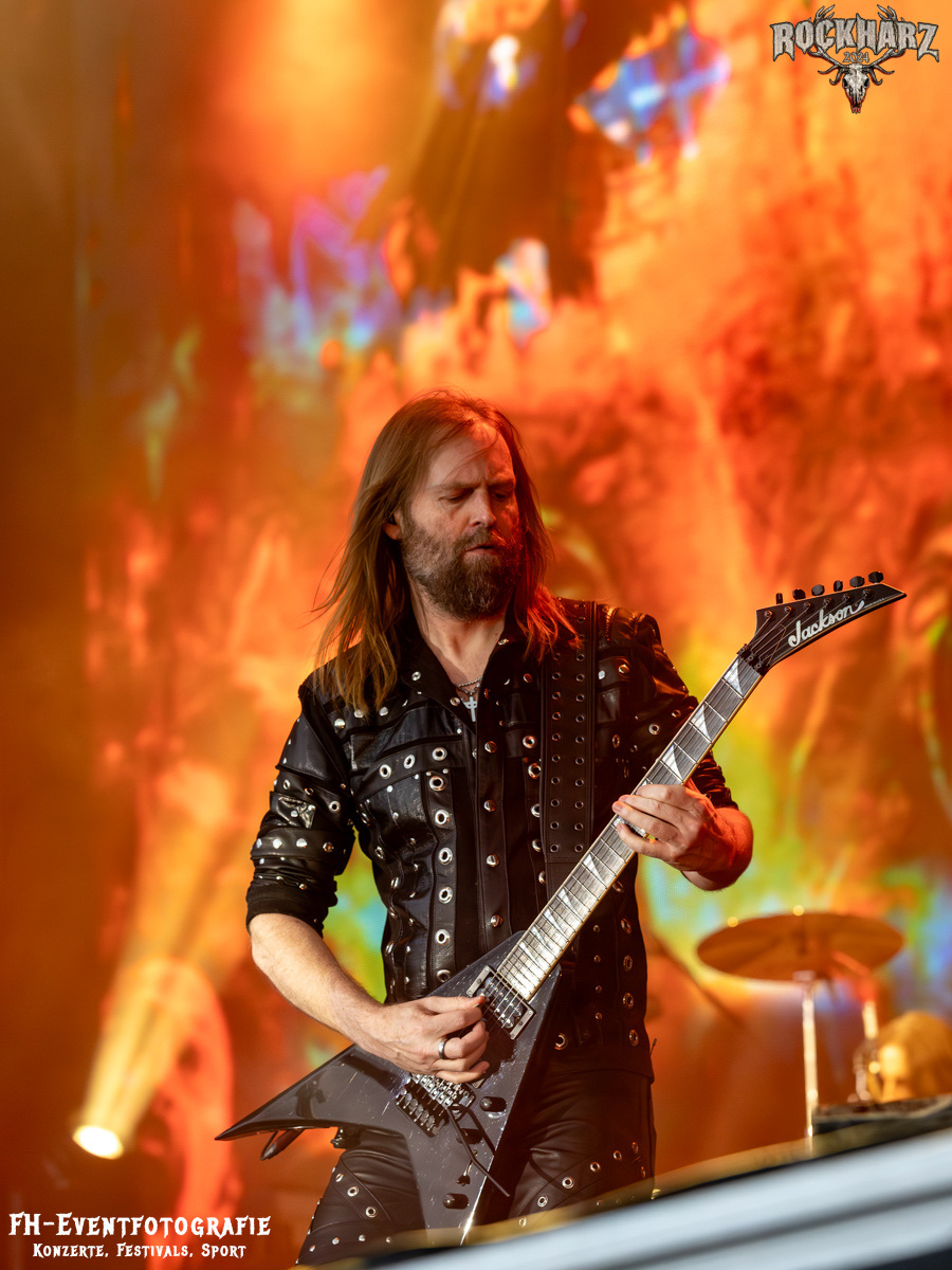 Die Umbauphase, also besser die Zeit zum Luftholen nach den Godfathers of British Heavy Metal nutzte die Rockharz Crew. 25.000 Menschen können auch einfach schweigen und so ihren Respekt und Dank ausdrücken. Danke an die großartigen Fans des Rockharz Open Air. Eskaliertes Danke rufen, das dabei in tosendem Beifall untergeht, war da sicher ein tolles Dankeschön der Fans an die Machermeute. Wo soll das Festival nur noch hinführen? Wir werden es 2025 definitiv erleben und die Jahre danach auch.
