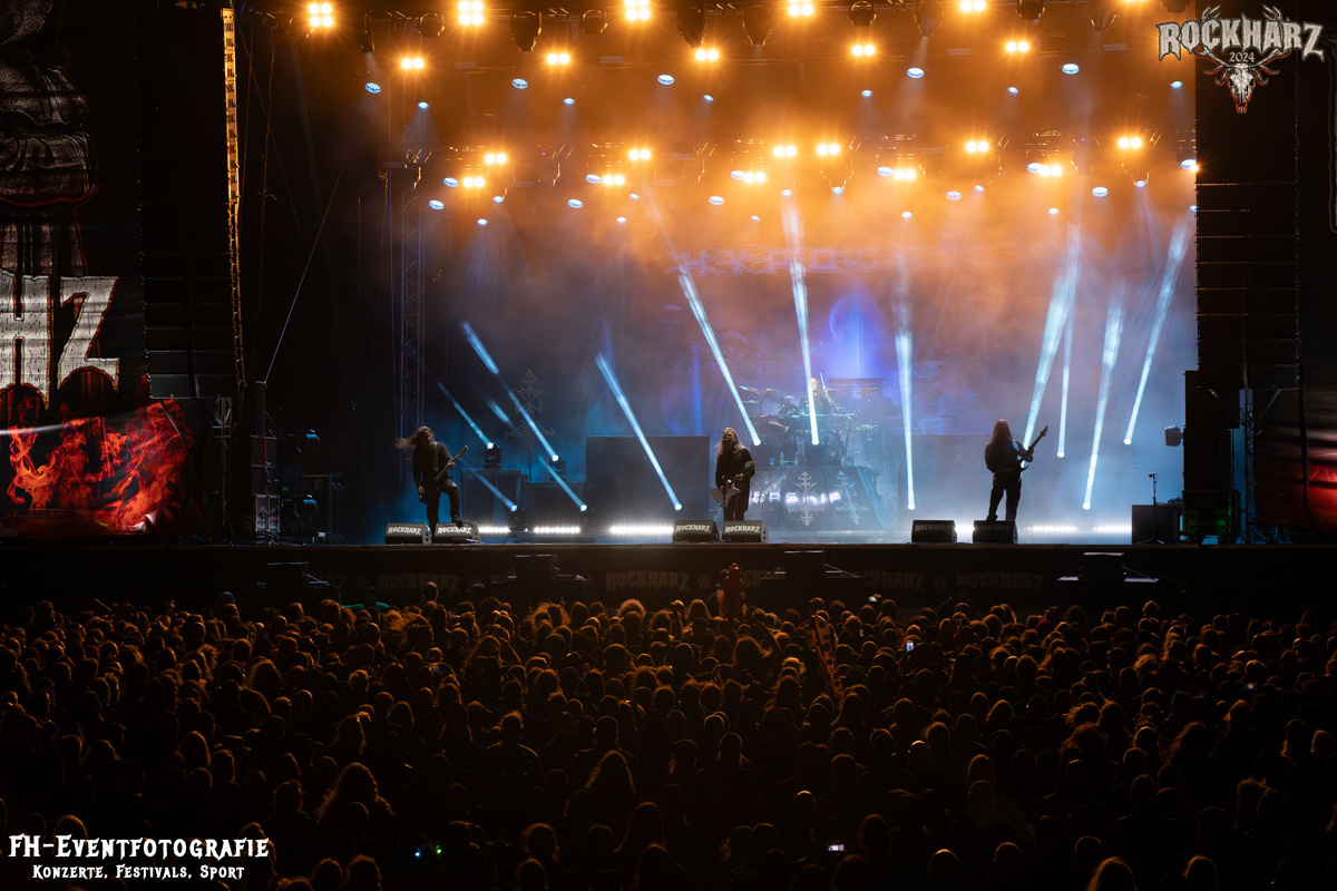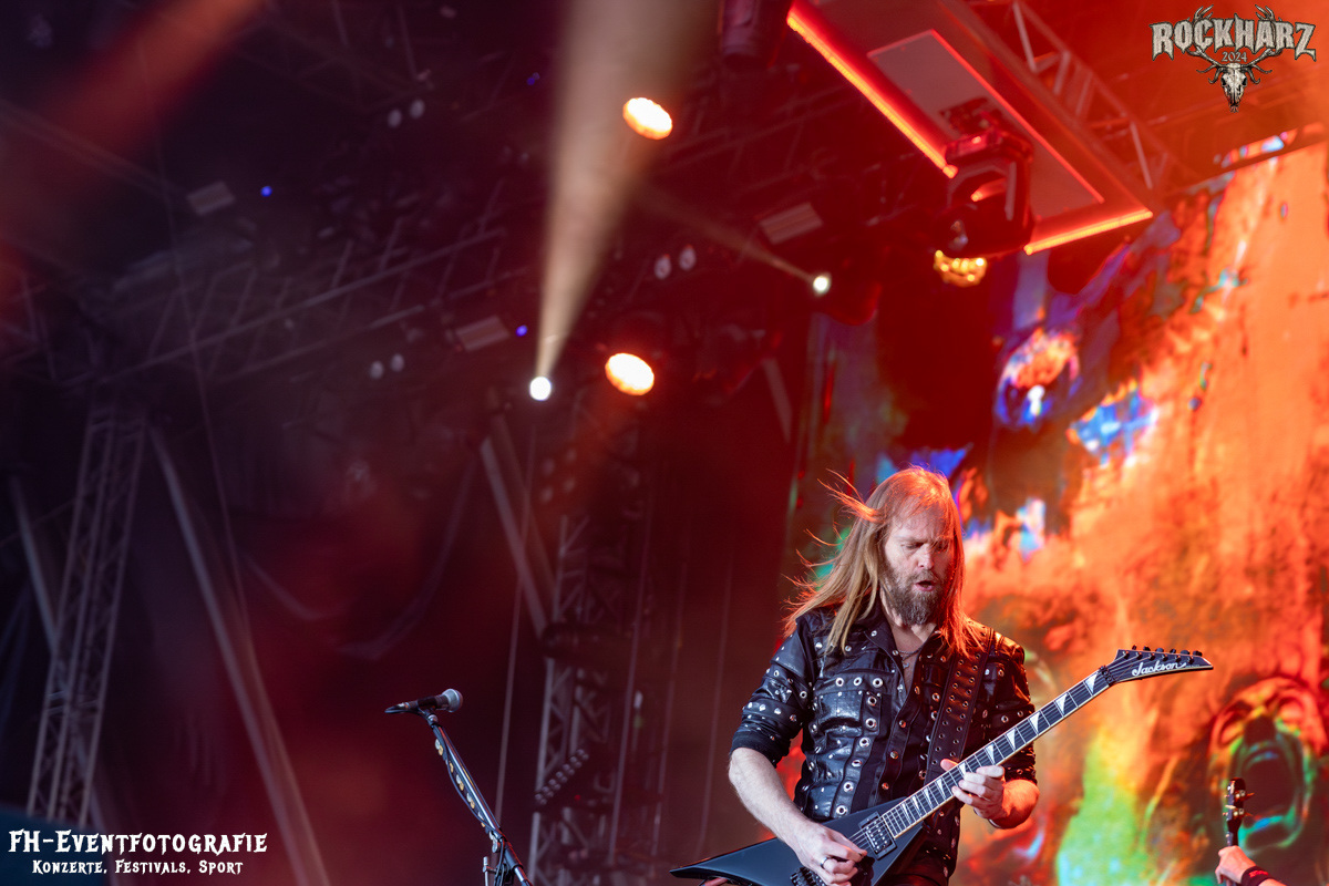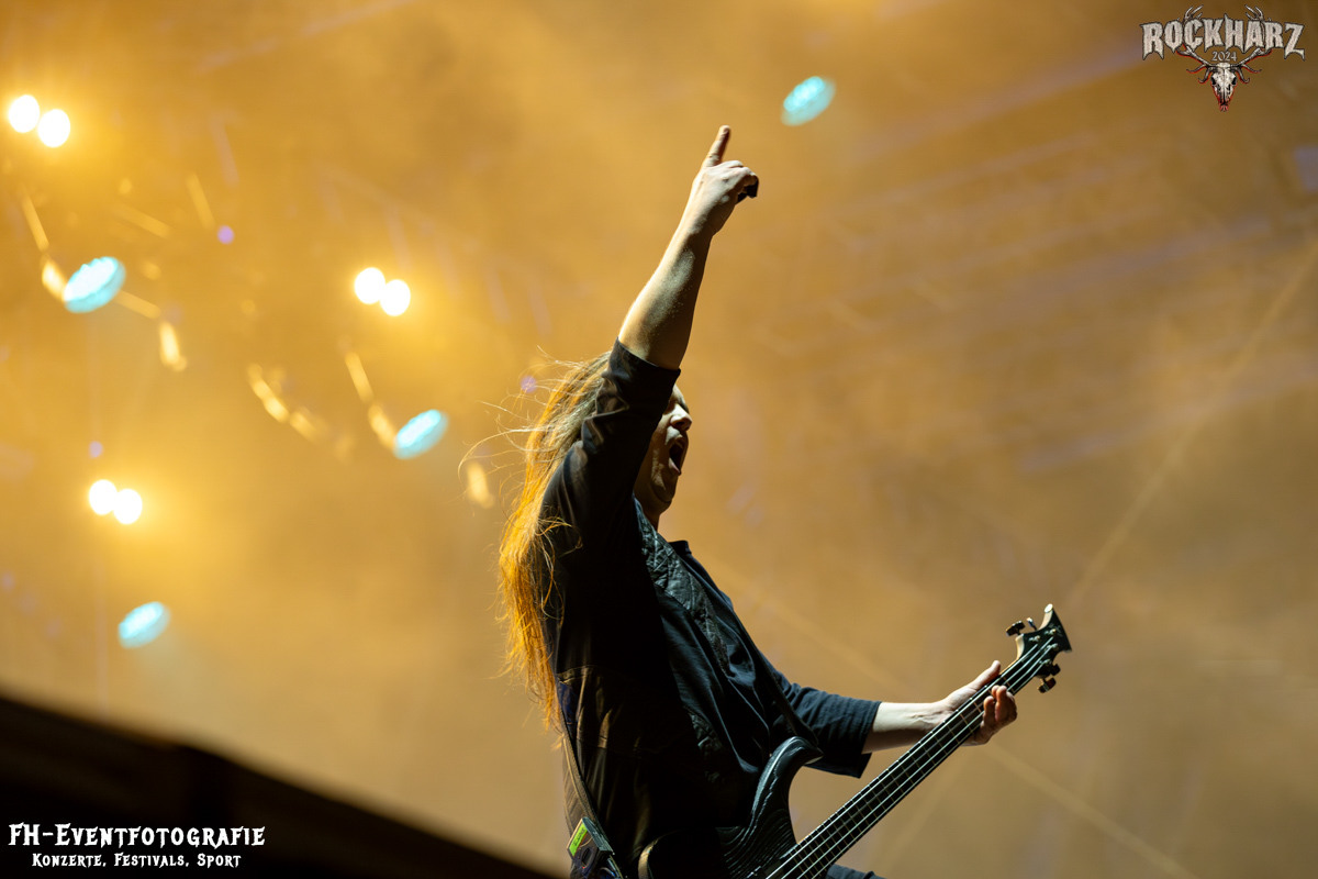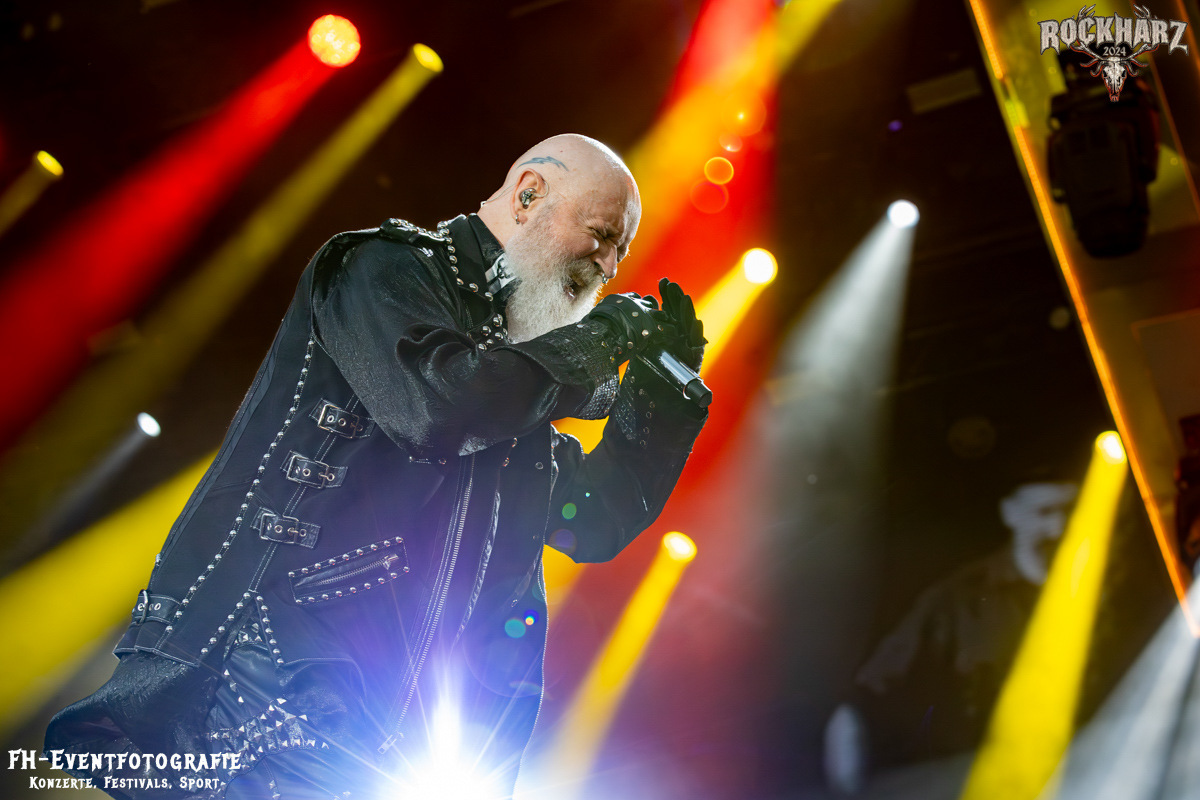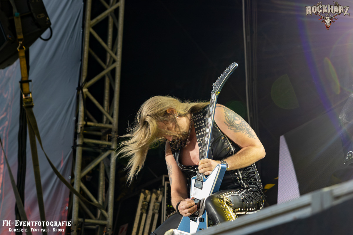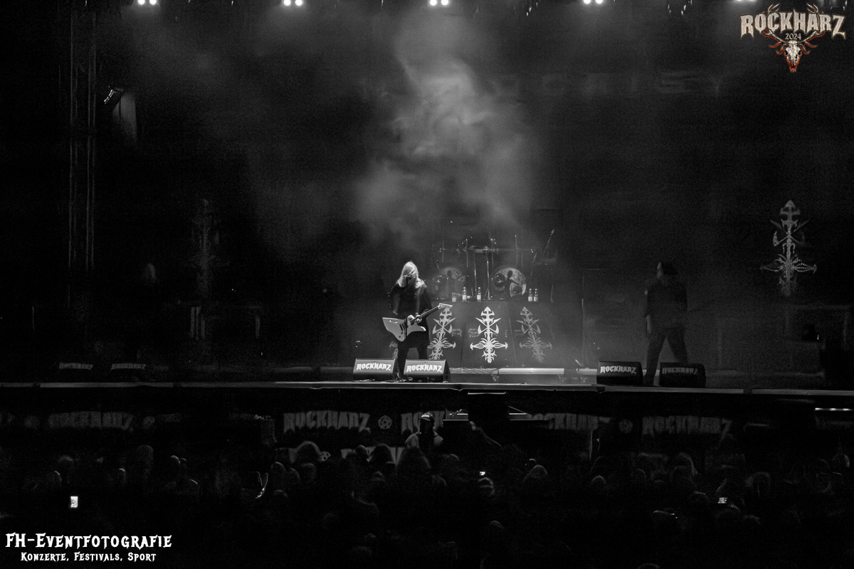 Die Umbauphase, also besser die Zeit zum Luftholen nach den Godfathers of British Heavy Metal nutzte die Rockharz Crew. 25.000 Menschen können auch einfach schweigen und so ihren Respekt und Dank ausdrücken. Danke an die großartigen Fans des Rockharz Open Air. Eskaliertes Danke rufen, das dabei in tosendem Beifall untergeht, war da sicher ein tolles Dankeschön der Fans an die Machermeute. Wo soll das Festival nur noch hinführen? Wir werden es 2025 definitiv erleben und die Jahre danach auch.