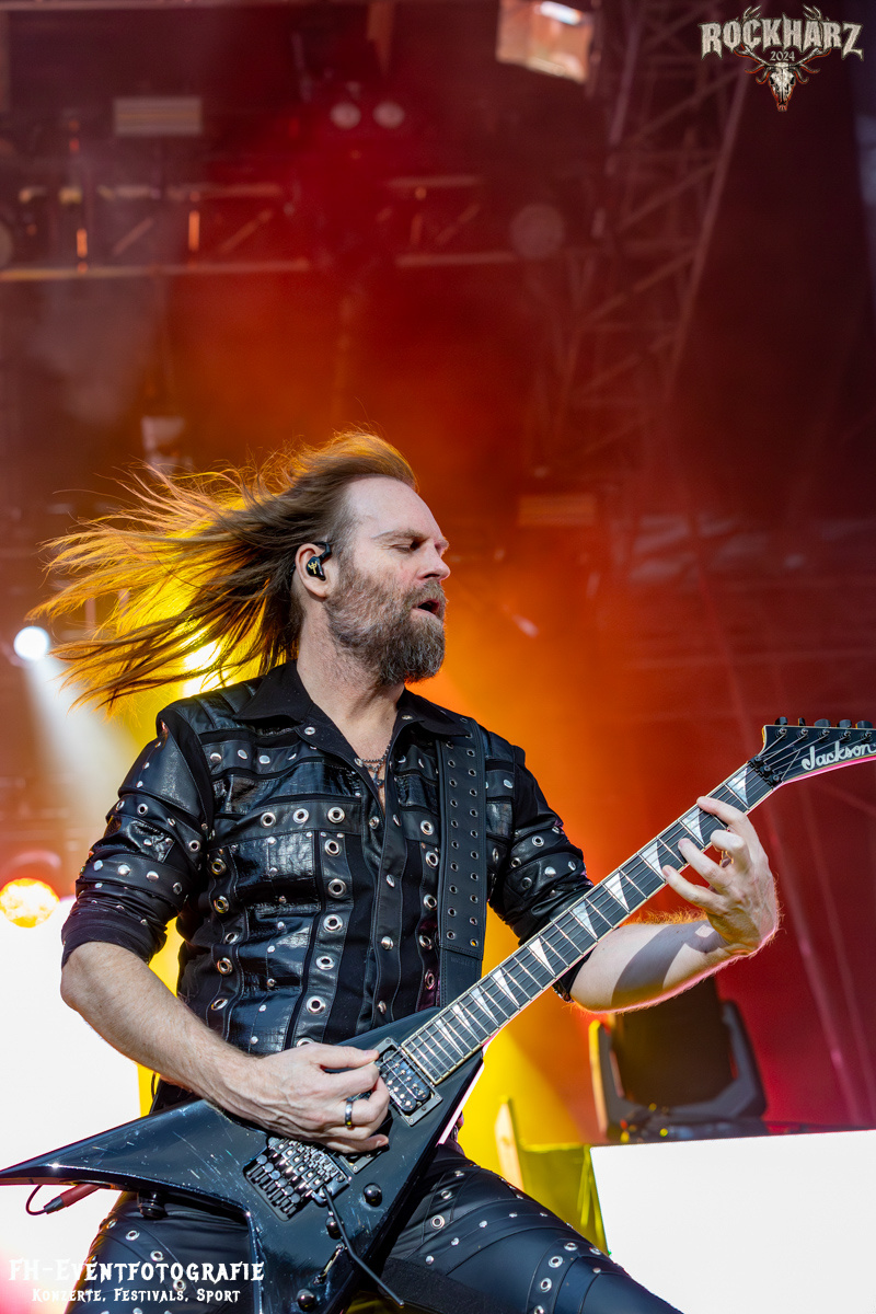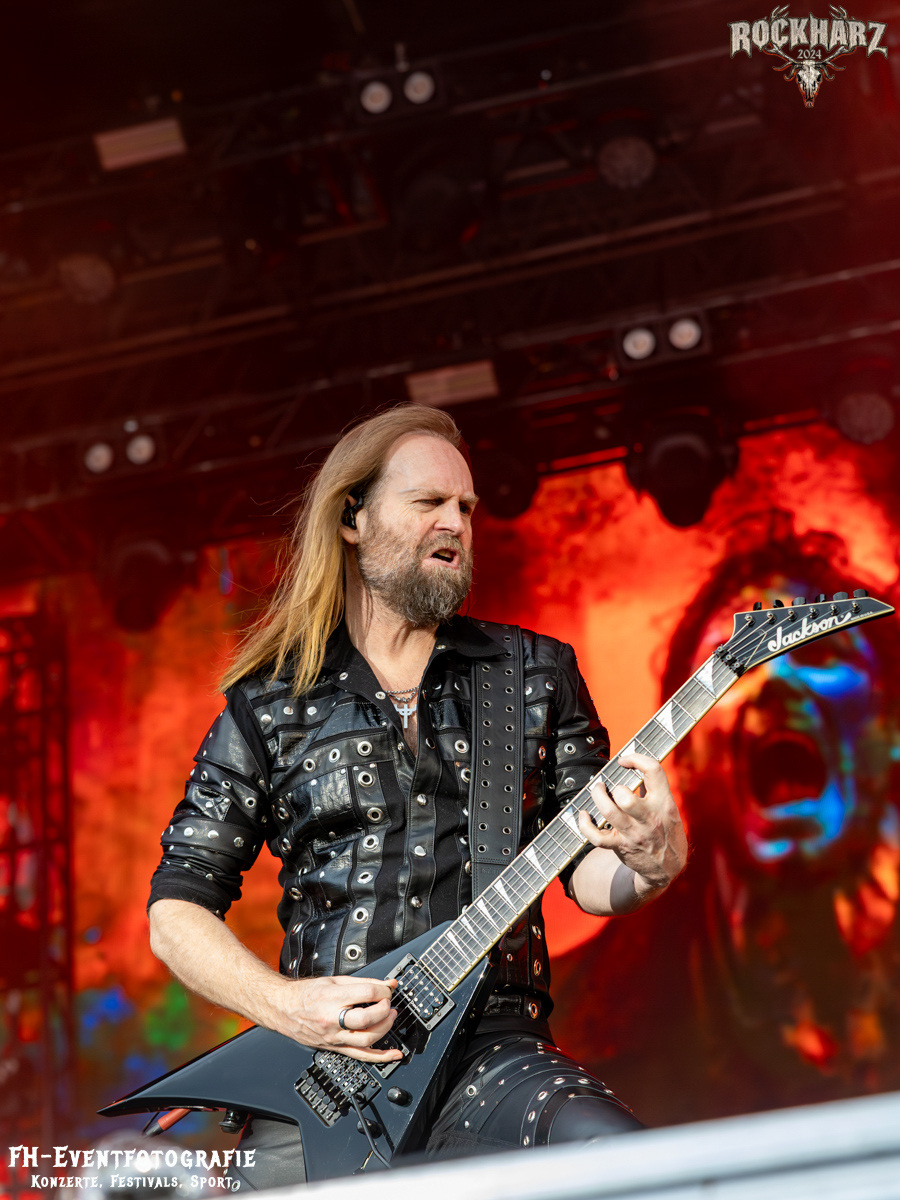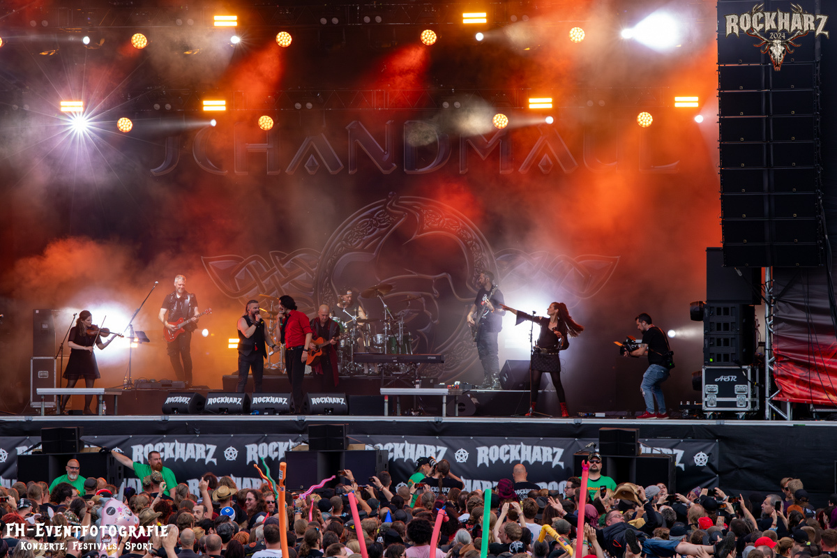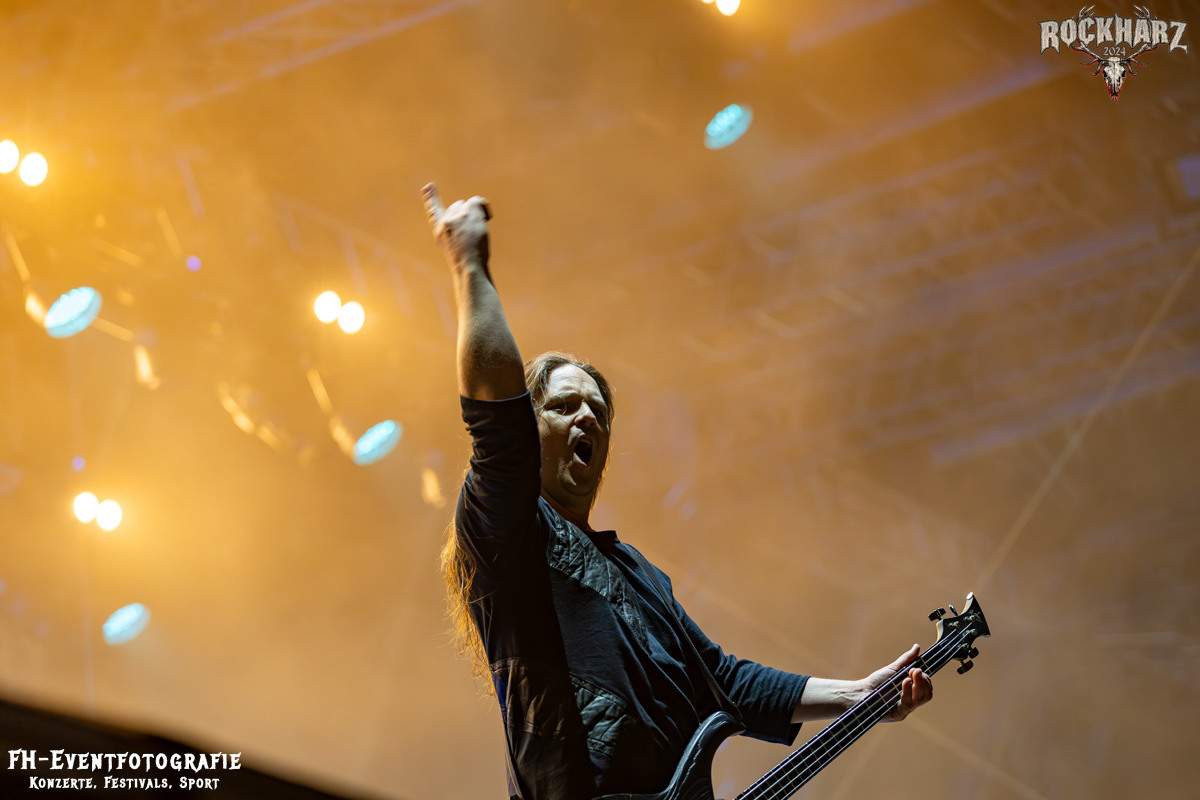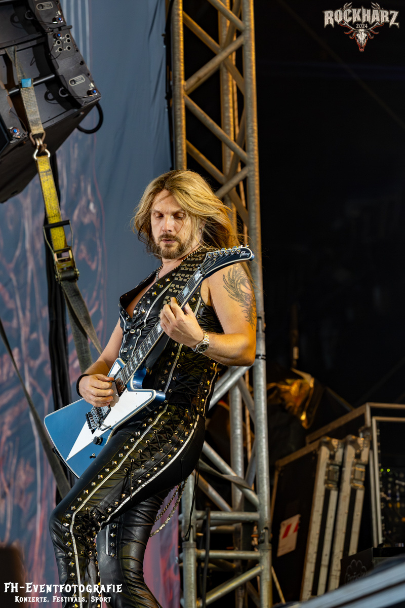 Die Umbauphase, also besser die Zeit zum Luftholen nach den Godfathers of British Heavy Metal nutzte die Rockharz Crew. 25.000 Menschen können auch einfach schweigen und so ihren Respekt und Dank ausdrücken. Danke an die großartigen Fans des Rockharz Open Air. Eskaliertes Danke rufen, das dabei in tosendem Beifall untergeht, war da sicher ein tolles Dankeschön der Fans an die Machermeute. Wo soll das Festival nur noch hinführen? Wir werden es 2025 definitiv erleben und die Jahre danach auch.