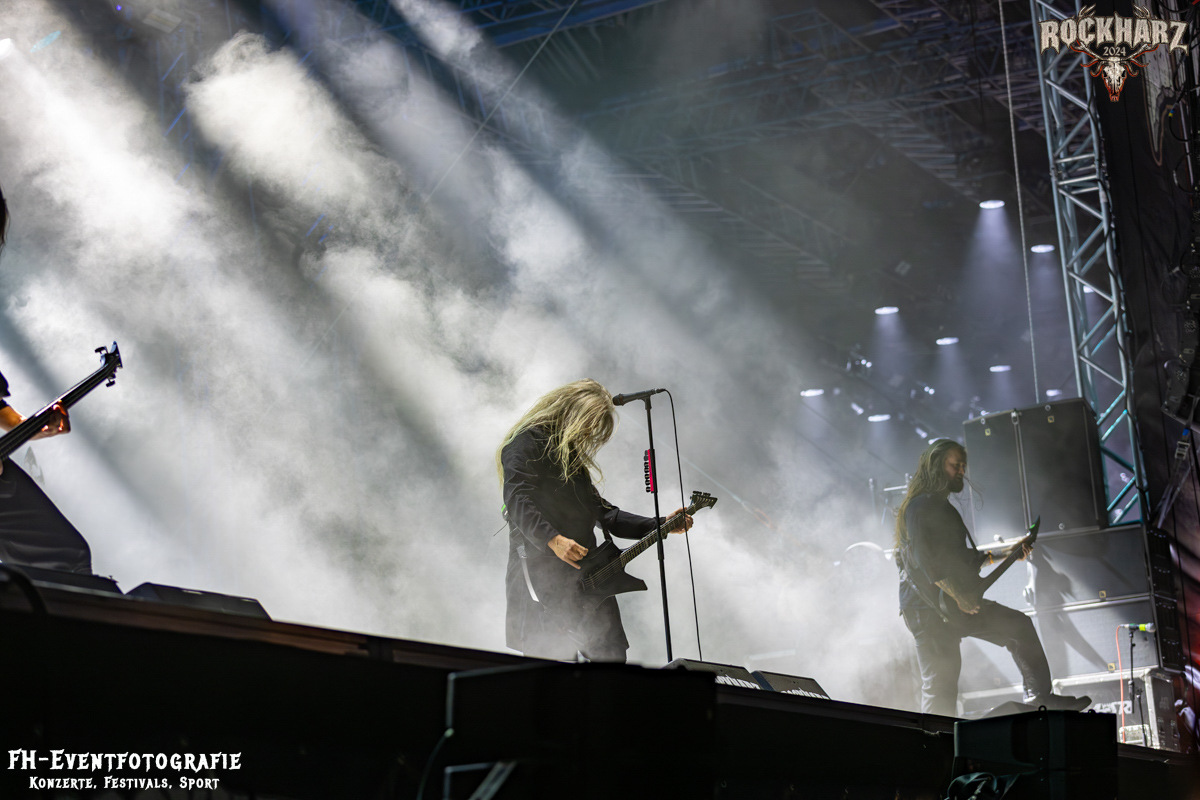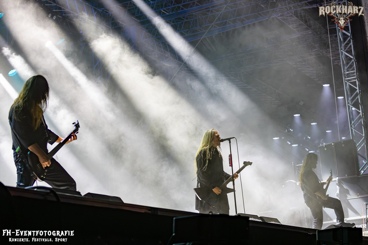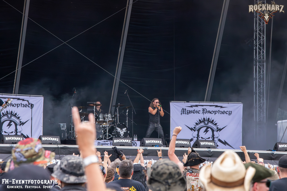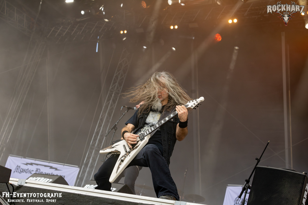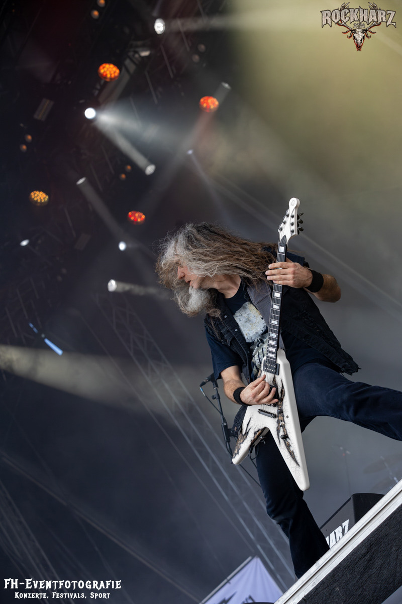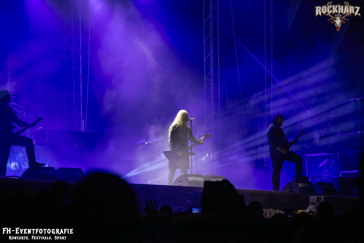 Die Umbauphase, also besser die Zeit zum Luftholen nach den Godfathers of British Heavy Metal nutzte die Rockharz Crew. 25.000 Menschen können auch einfach schweigen und so ihren Respekt und Dank ausdrücken. Danke an die großartigen Fans des Rockharz Open Air. Eskaliertes Danke rufen, das dabei in tosendem Beifall untergeht, war da sicher ein tolles Dankeschön der Fans an die Machermeute. Wo soll das Festival nur noch hinführen? Wir werden es 2025 definitiv erleben und die Jahre danach auch.