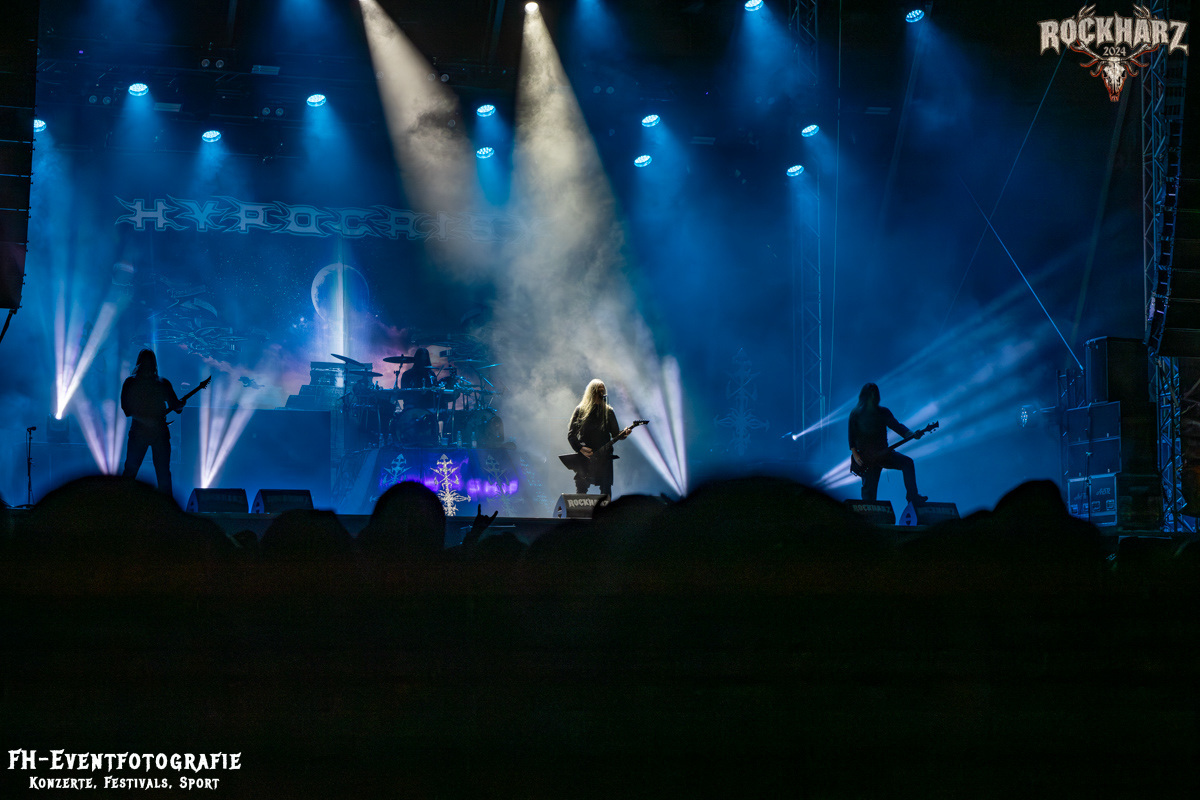 Es blieben nun noch drei Bands. Hypocrisy machten den Anfang vom Ende. Ich habe schon ein paar Auftritte von dieser Band gesehen. Das war mit weitem Abstand der beste, den ich bisher von ihnen gesehen habe. Wau, da stimmte wirklich alles. Licht, Schatten, Sound und die Begeisterung der Musiker. Bis dahin hätte ich über einen Besuch auf ein Konzert direkt von denen nicht nachgedacht; nach diesem Auftritt ist das fest eingeplant.